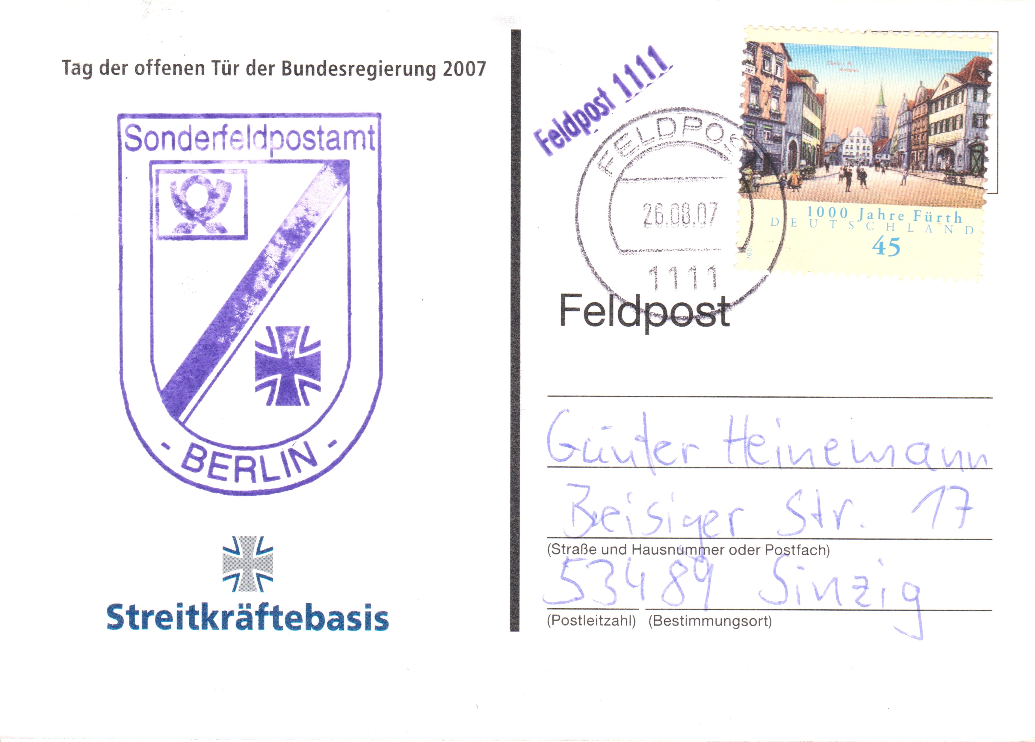 FELDPOST 1111 ist das Sonderfeldpostamt zum Tag der offenen Tür im Verteidigungsministerium.