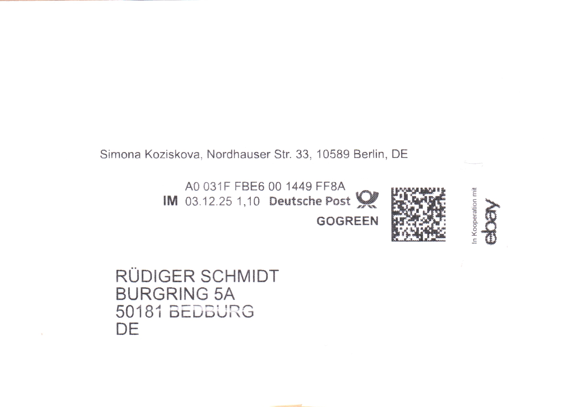 Internetmarke = "IM" am 18.07.2025 für ein EINSCHREIBEN EINWURF, Portostufe 3,45 € mit Zusatz GOGREEN PLUS: