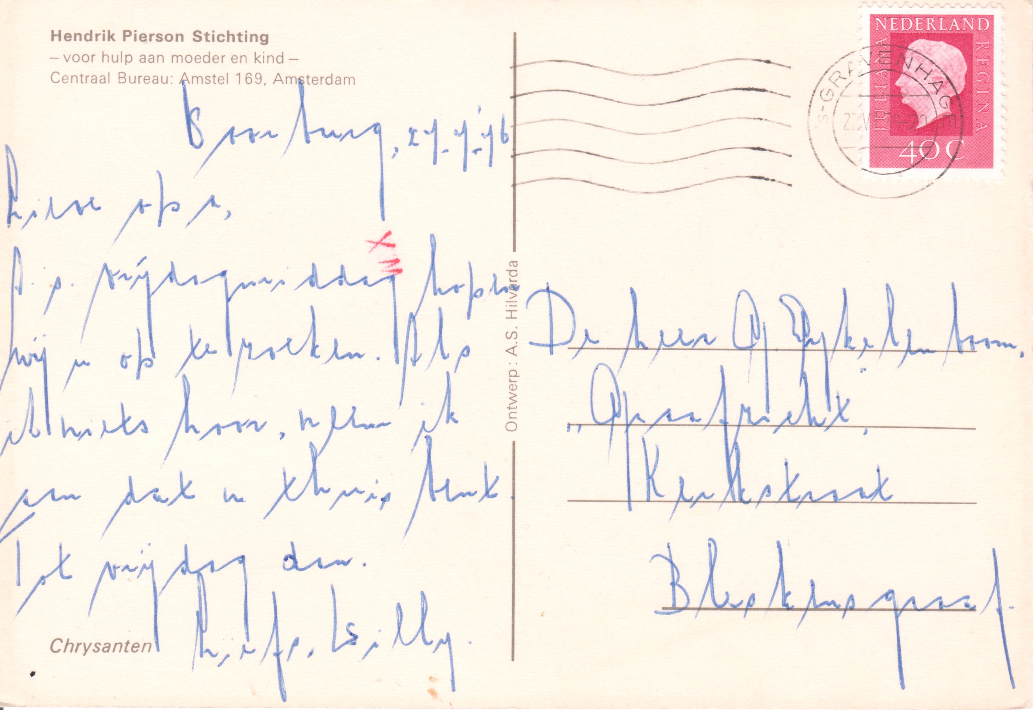 Ansichtskarte aus Den Haag vom 27.07.1976 mit Transormastempel "WX":