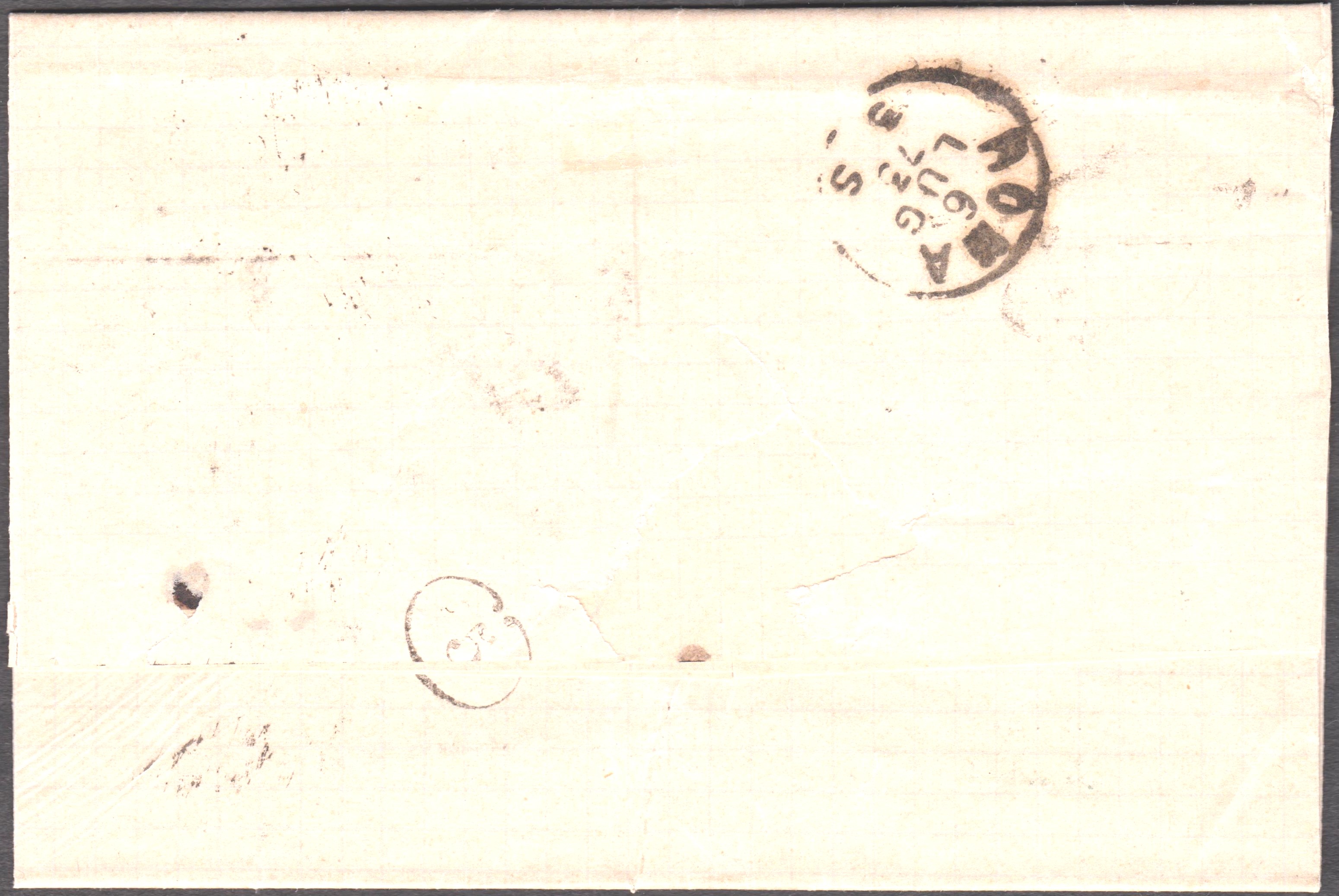 Zustellerstempel "5" aus Rom 1873 rückseitig auf Brief aus BOLOGNA: