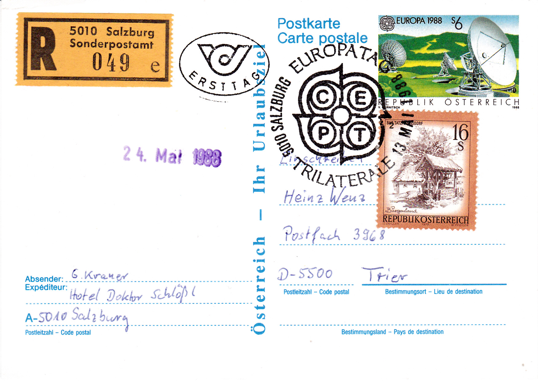 Hier ein Sonder-R-Zettel aus Österreich "Weltpostkongreß Wien" am 15.06.1964 auf einem Ersttagsbrief mit zum Thema passendem Postwertzeichen sowie Sonderstempel mit Kennummer "8":