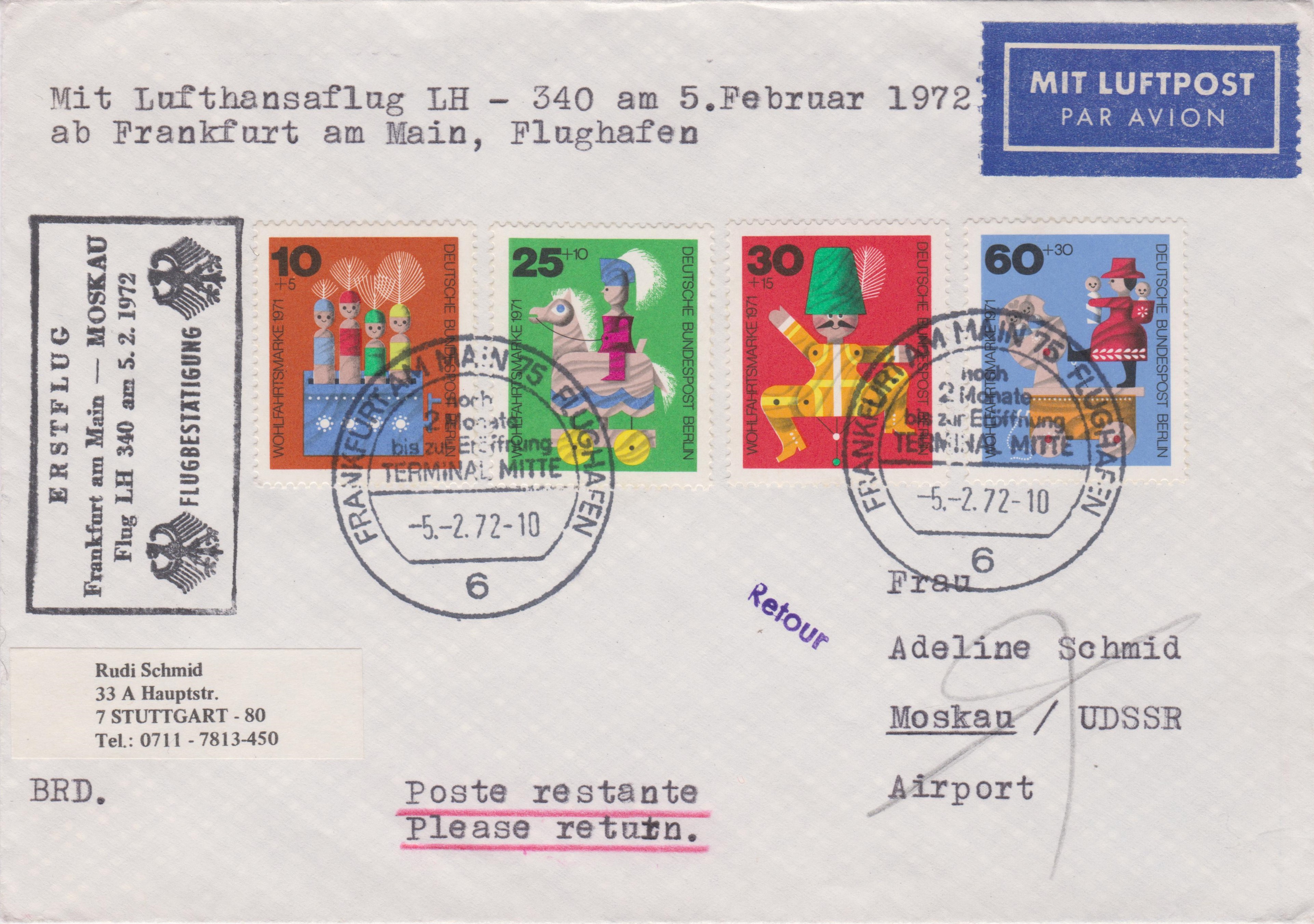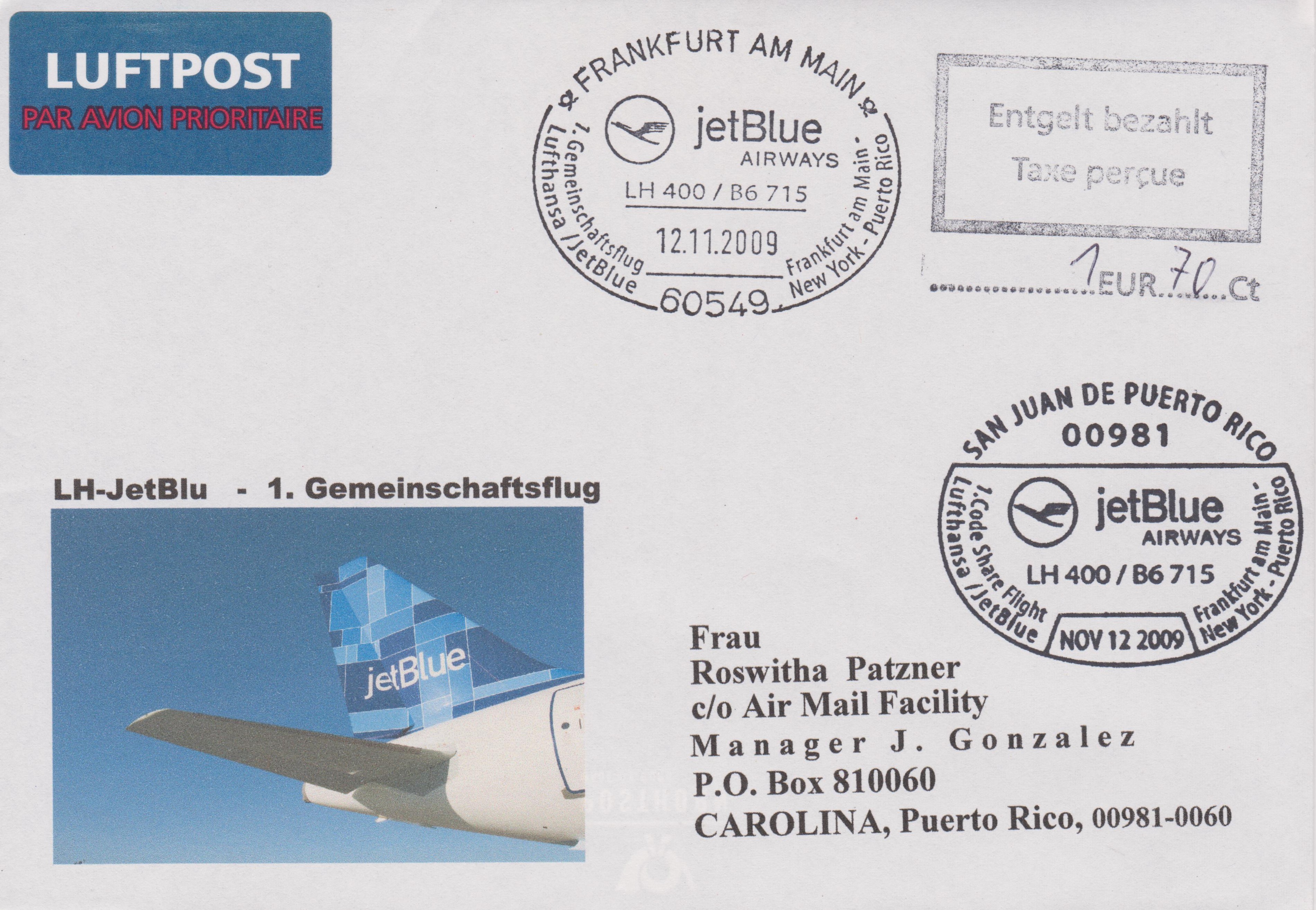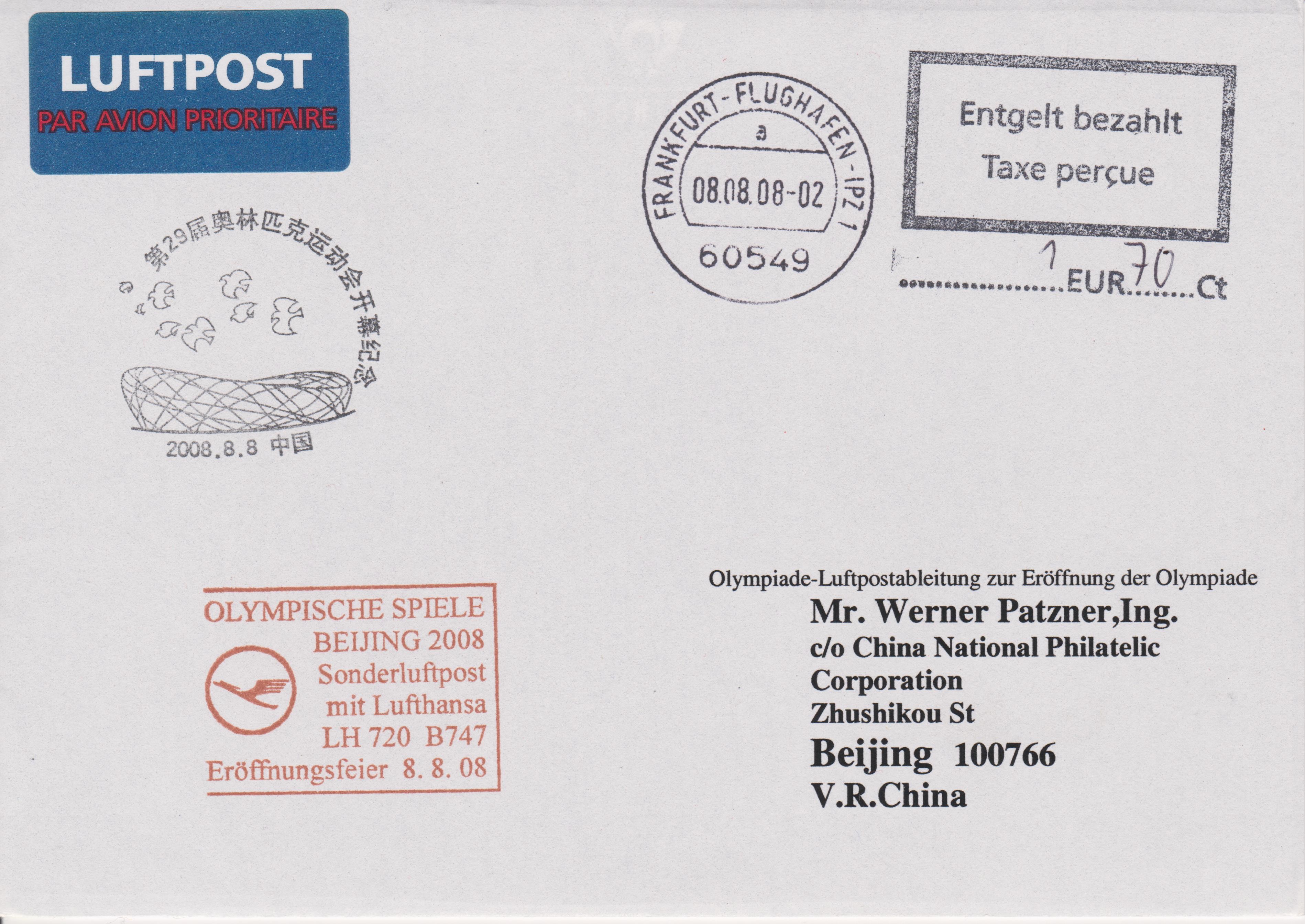 Luftpostbrief, aufgegeben am 08.08.2008 um "02" (= 2 Uhr früh!) in 60549 FRANKFURT-FLUGHAFEN-IPZ 1: