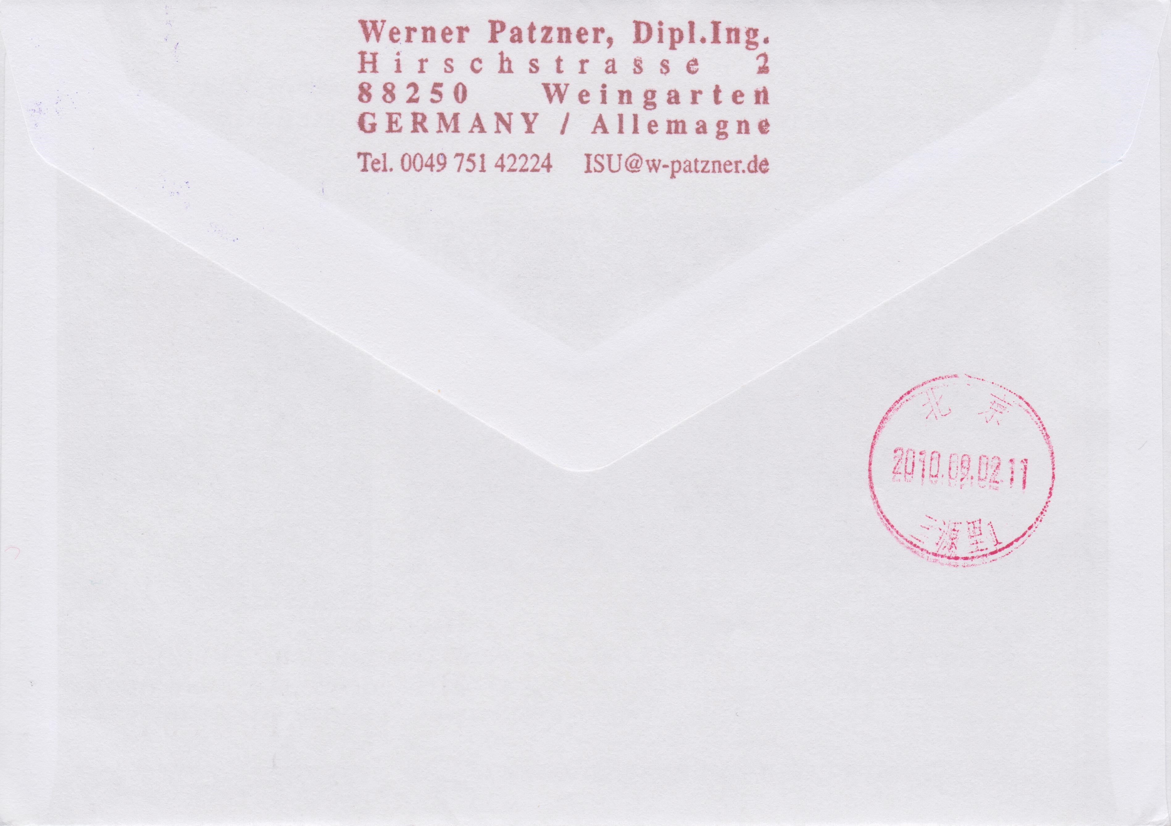 Der Beleg wurde dann per "Sonderluftpost mit Lufthansa LH 720 B747" befördert und erhielt in Beijing, V.R.China einen Ankunftstempel.