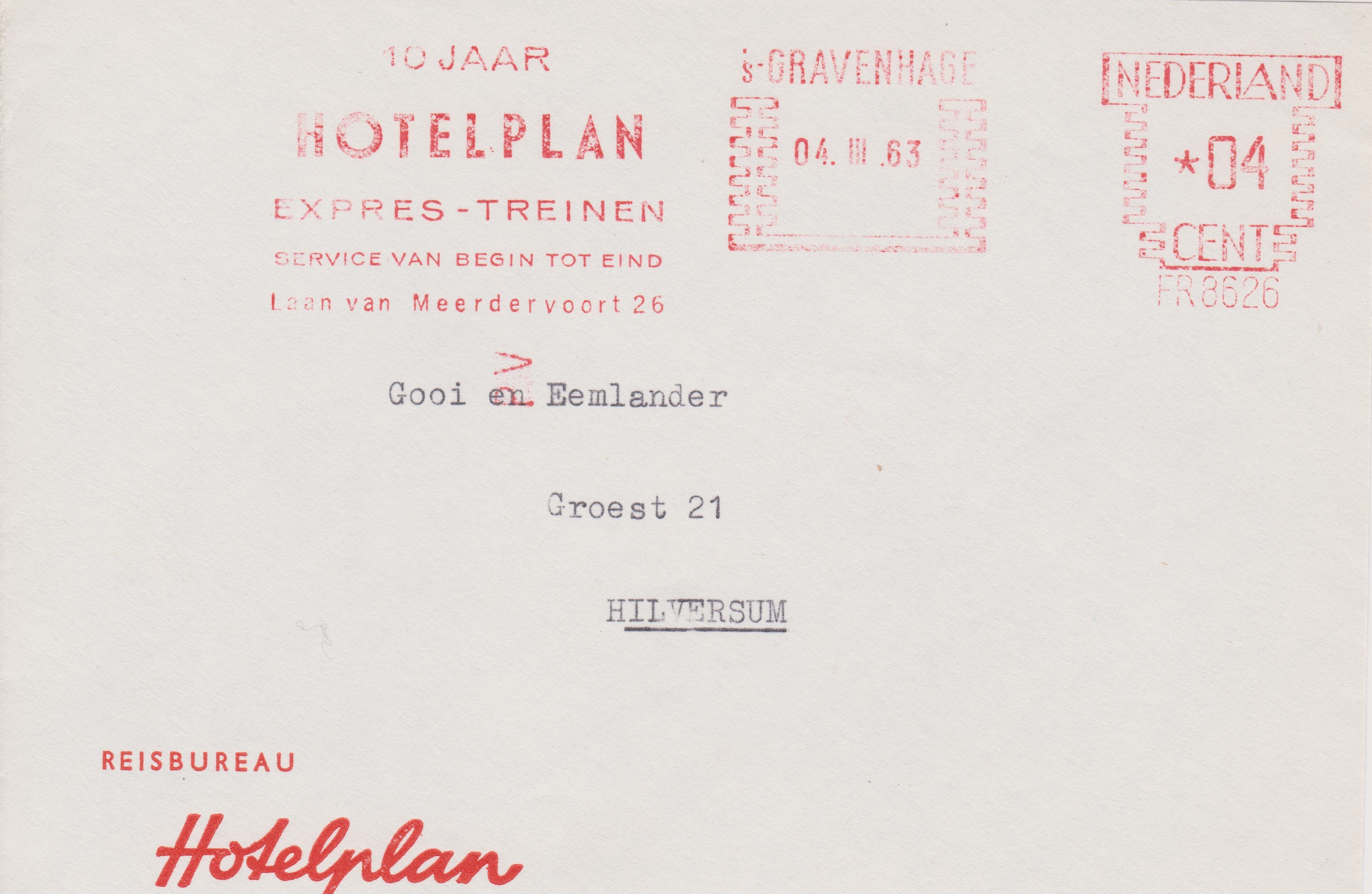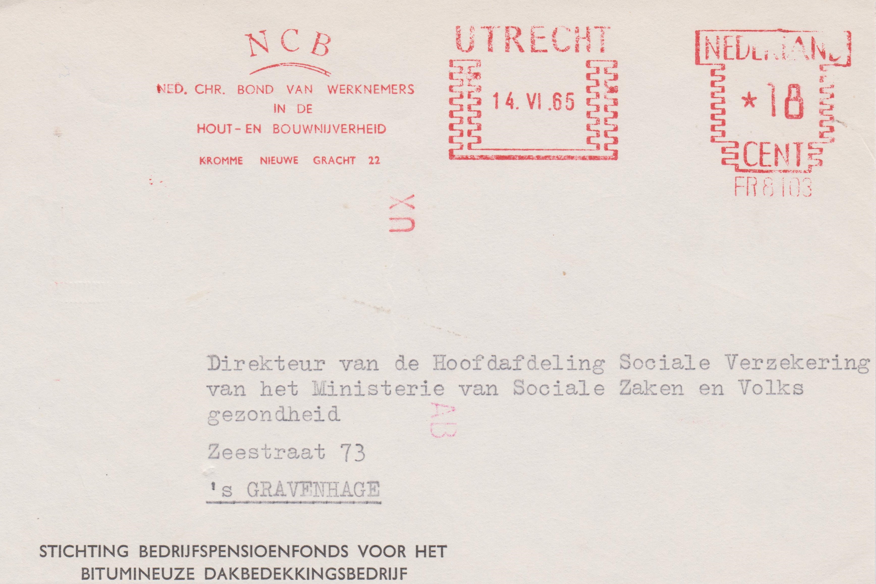 Ausschnitt aus einem Brief mit einem Absenderfreistempel vom 14.06.1965 aus UTRECHT nach Den Haag (= 's GRAVENHAGE):