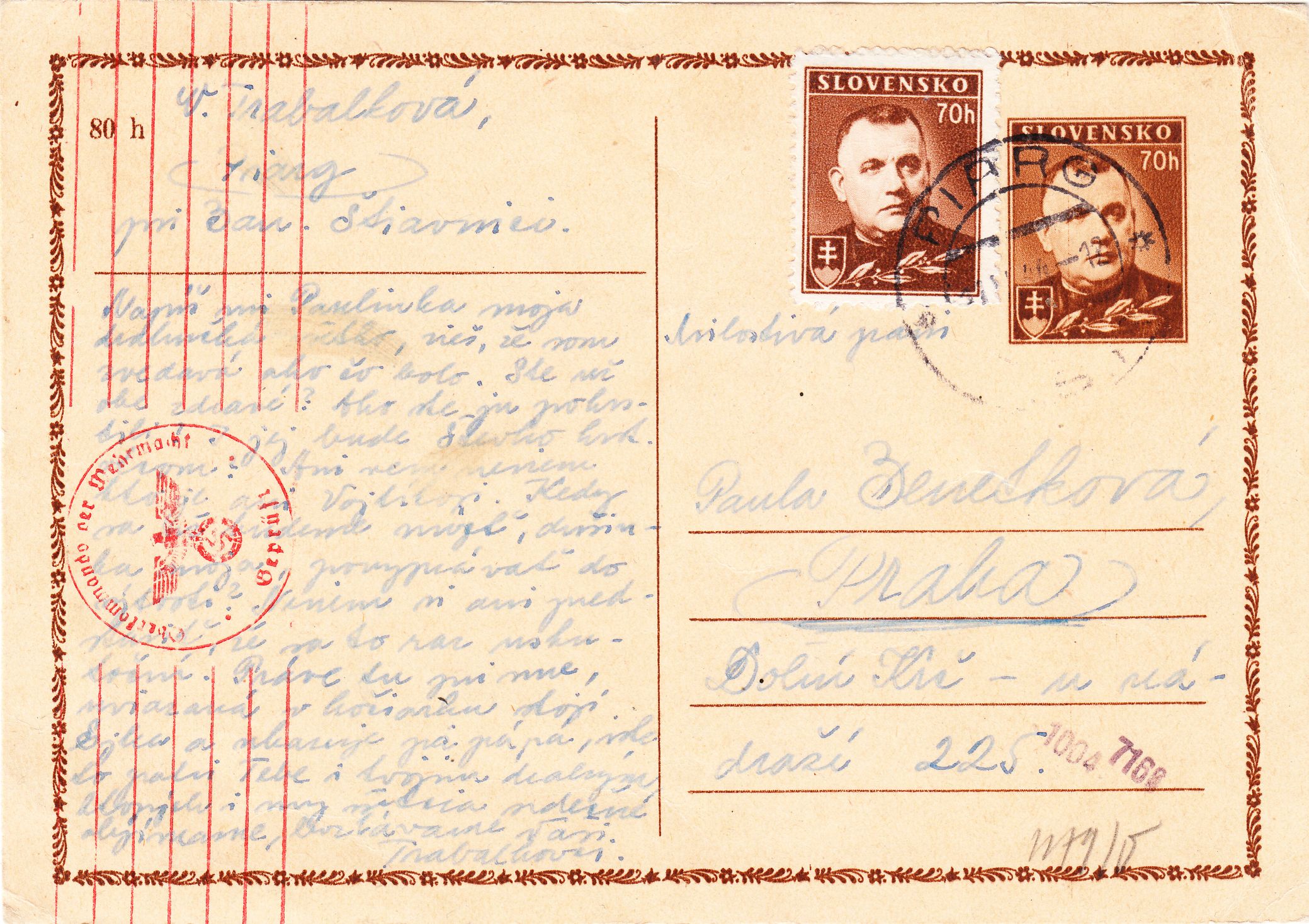 Diese Postkarte aus der Slowakei hat einen Postwertzeicheneindruck zu "70 h" und wurde inklusive Papierpreiszuschlag für "80 h" an die Postbenutzer abgegeben: