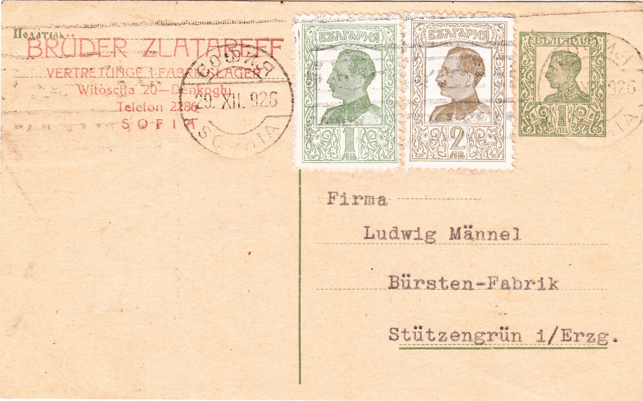Dieses nach Prag im Protektorat Böhmen und Mähren adressierte Exemplar erhielt 1944 eine wert- und bildgleiche Zusatzfrankatur.
