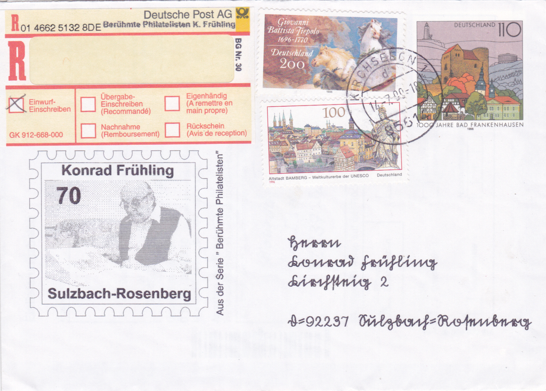 Privatpostkarte mit Luftpost mit den Wertstempel einer 15Pf Marke Berlin der Serie Gustav Heinemann und einer Marke Berlin zu 20Pf der Serie Unfallverhütung und Zusatzfrankatur einer Marke Bund zu 130Pf aus der Serie Gustav Heinemann (MiNr 728) verschickt als Einschreiben mit einem Sonderstempel aus Markgröningen vom 19.11.1972 und einem Sonder-E-Zettel "100 Jahre Postkarten".