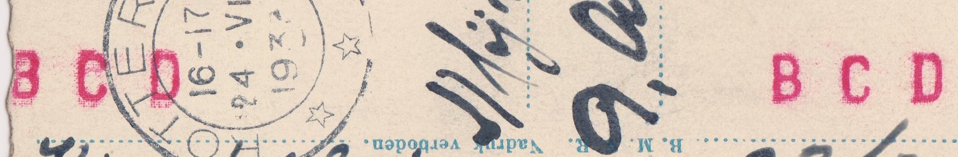 Dieser Brief durchlief in Rotterdam die TRANSORMA und erhielt einen Transorma-Bandstempel "E":