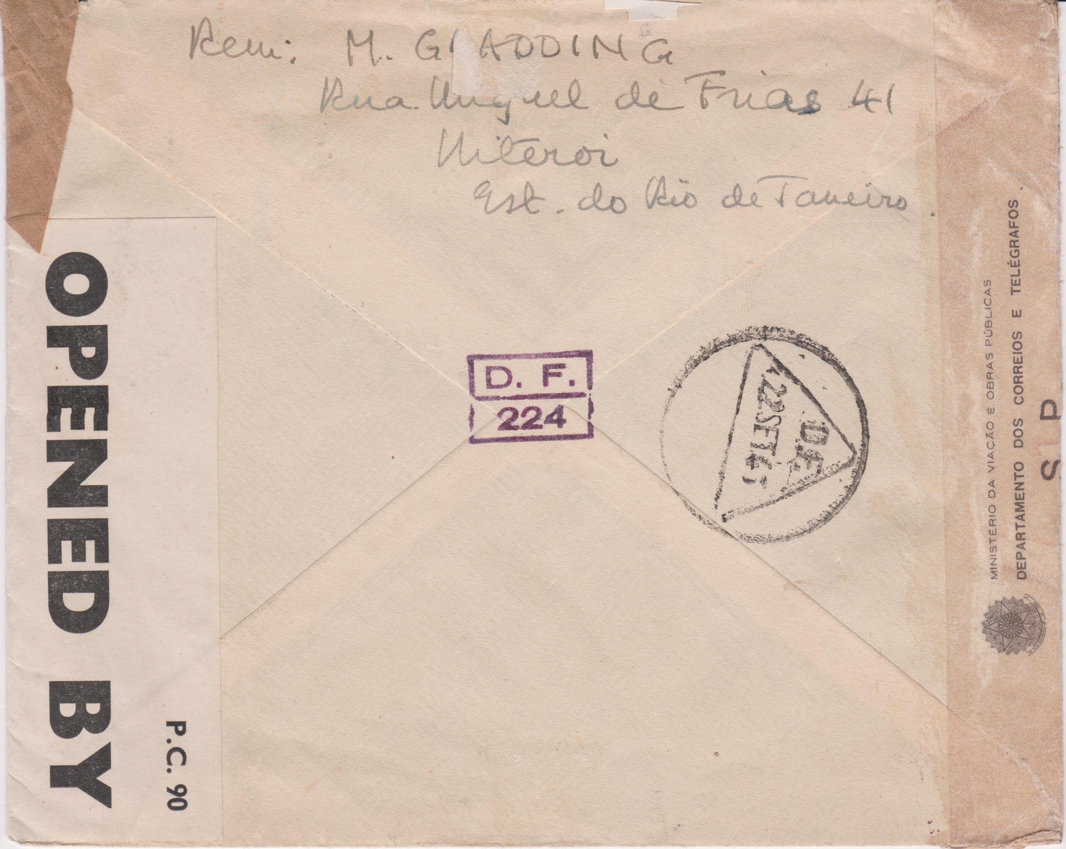 Brief aus Brasilien nach "Inglaterra" = England mit Doppelzensur sowie Transorma-Stempel "CH":