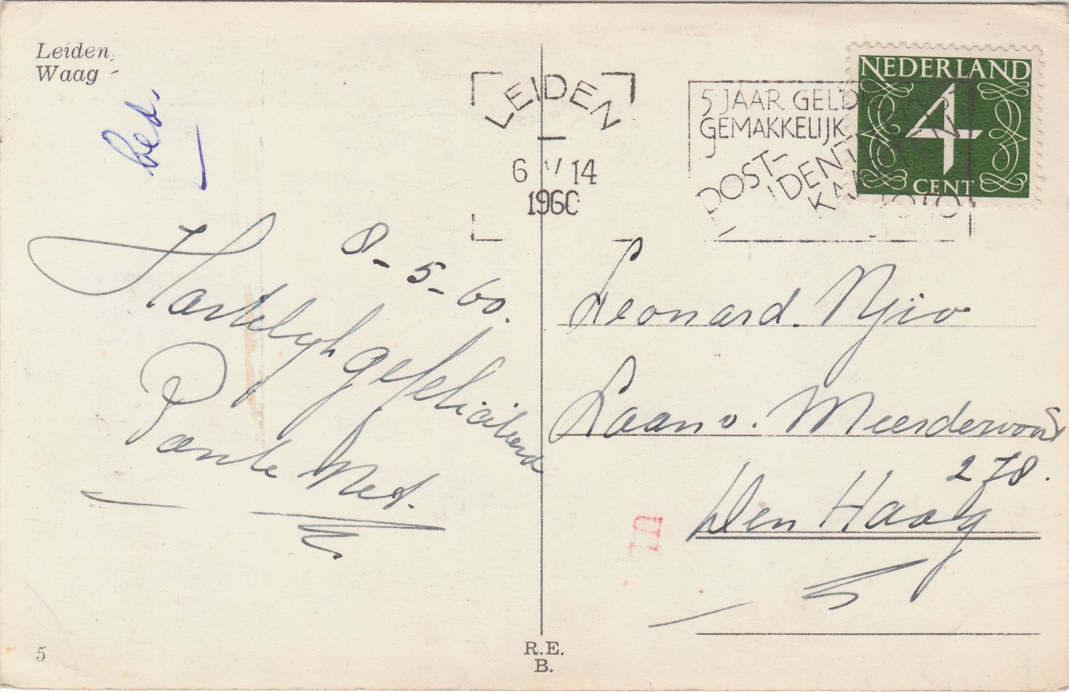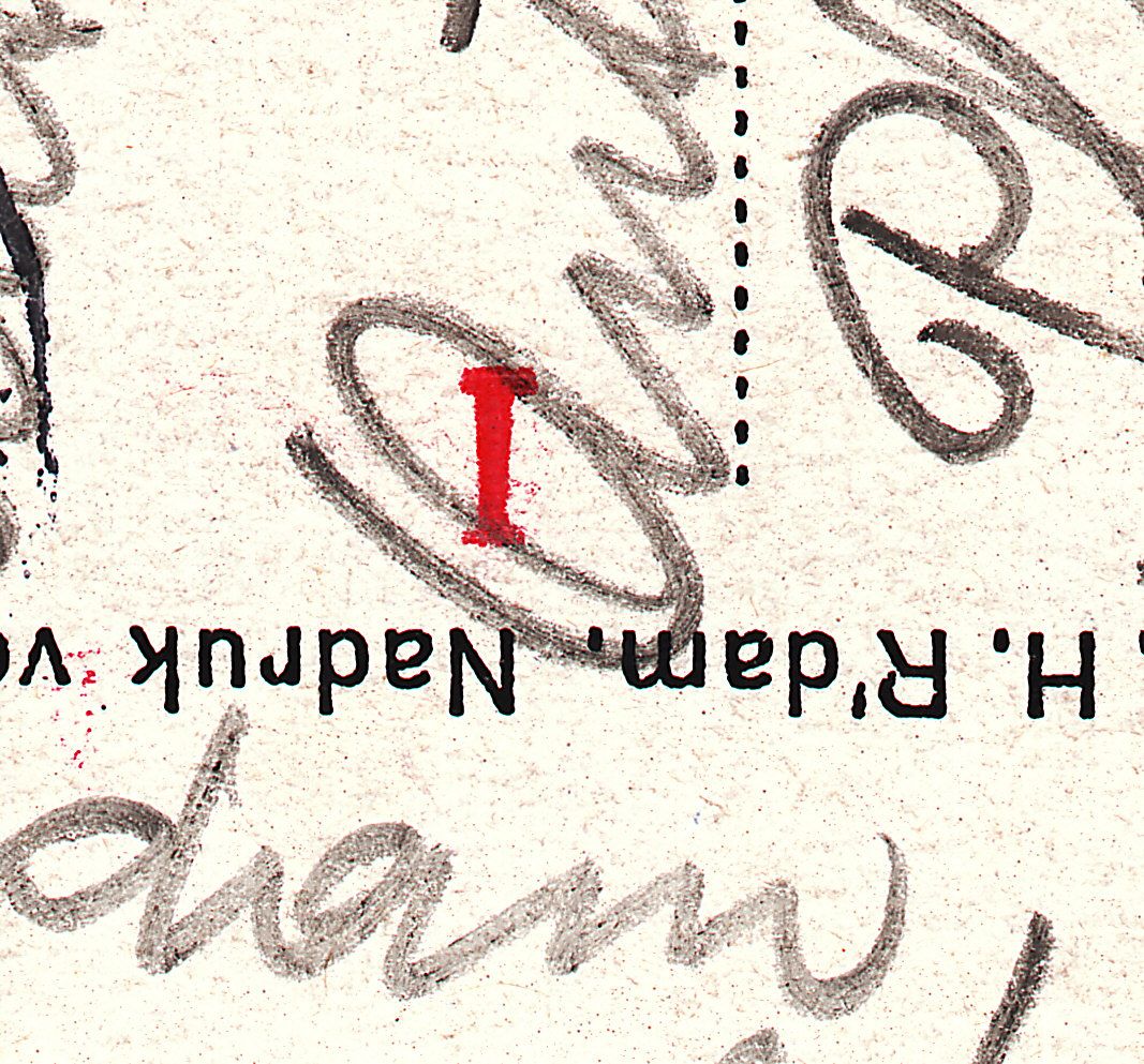 Diese Postkarte durchlief in Den Haag = ’s-Gravenhage die Stempelmaschine sowie die Ausgangssortierung per TRANSORMA, siehe Operatorstempel "YY", wobei aber lediglich ein minimaler Teilabschlag des Maschinenstempels auf dem Beleg erfolgte: