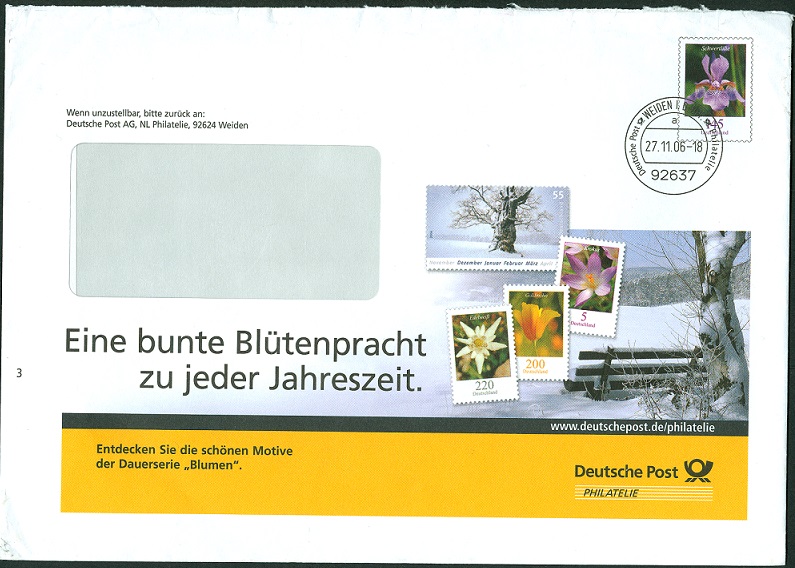 EA F 141 fällt eher durch seinen platten, aber guten, Slogan "Entdecken Sie die schöne Welt der Philatelie" auf, als durch wirklich Neues. Auch unsere schöne Schwertlilie hat mitunter etwas Langweiliges an sich.