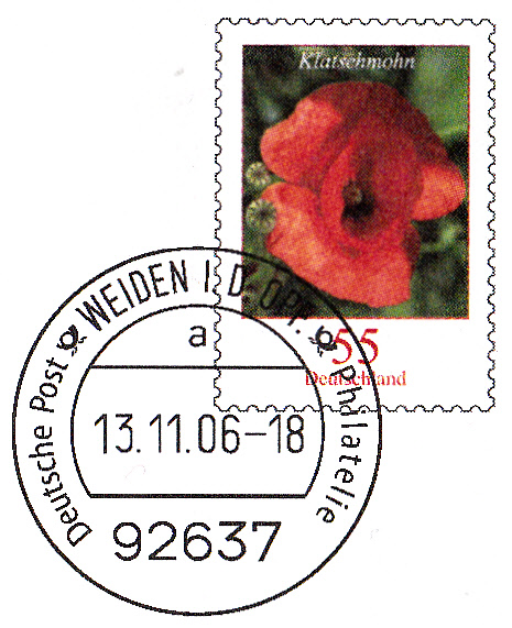 Dieser Ganzsachenumschlag (MiNr EA F173) im Format 229x114 mm hat einen Wertstempel mit der 45 Cent-Marke der Dauerserie "Blumen" (Klatschmohn,MiNr 2472. Die Vorausentwertung trägt das Datum "13.11.06". Die Rückseite ist nicht bedruckt.