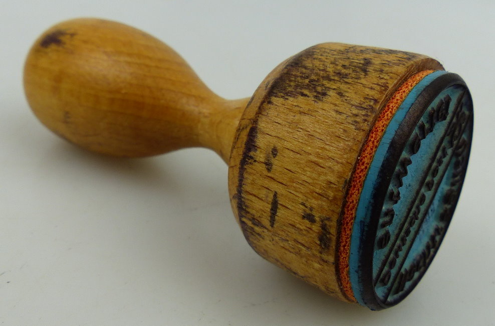 Dann auch gleich mal ein erstes Beispiel für einen Stempeltyp ohne Datumszeile. Und die angefügten Fragen: Wo wurde der überall verwendet? Ab wann etwa? War das ein Gummistempel? ... Weitere Antworten?
