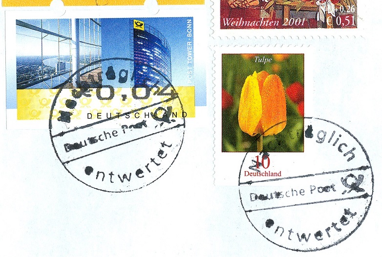 Seit 1997 erhielten die Briefzusteller solche Stempel für die nachträgliche Entwertung: