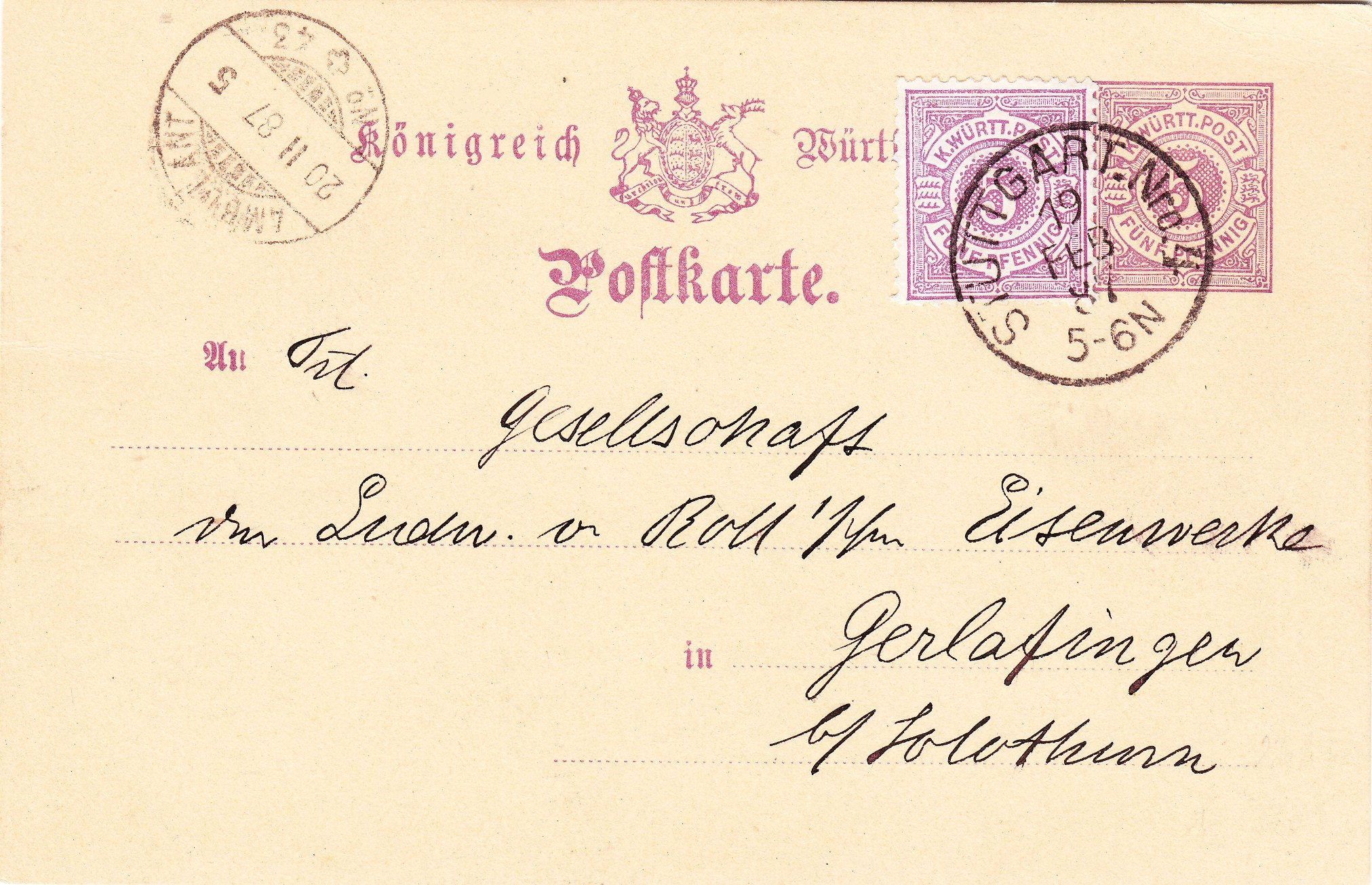Dieser nach Breslau adressierte Beleg Preussen U 26 A wurde an einem "16.07." in "NEUMARKT I/SCH" aufgegeben und die Preussen MiNr. 16 als bildgleiche Zusatzfrankatur wurde mit einem Rahmenstempel entwertet: