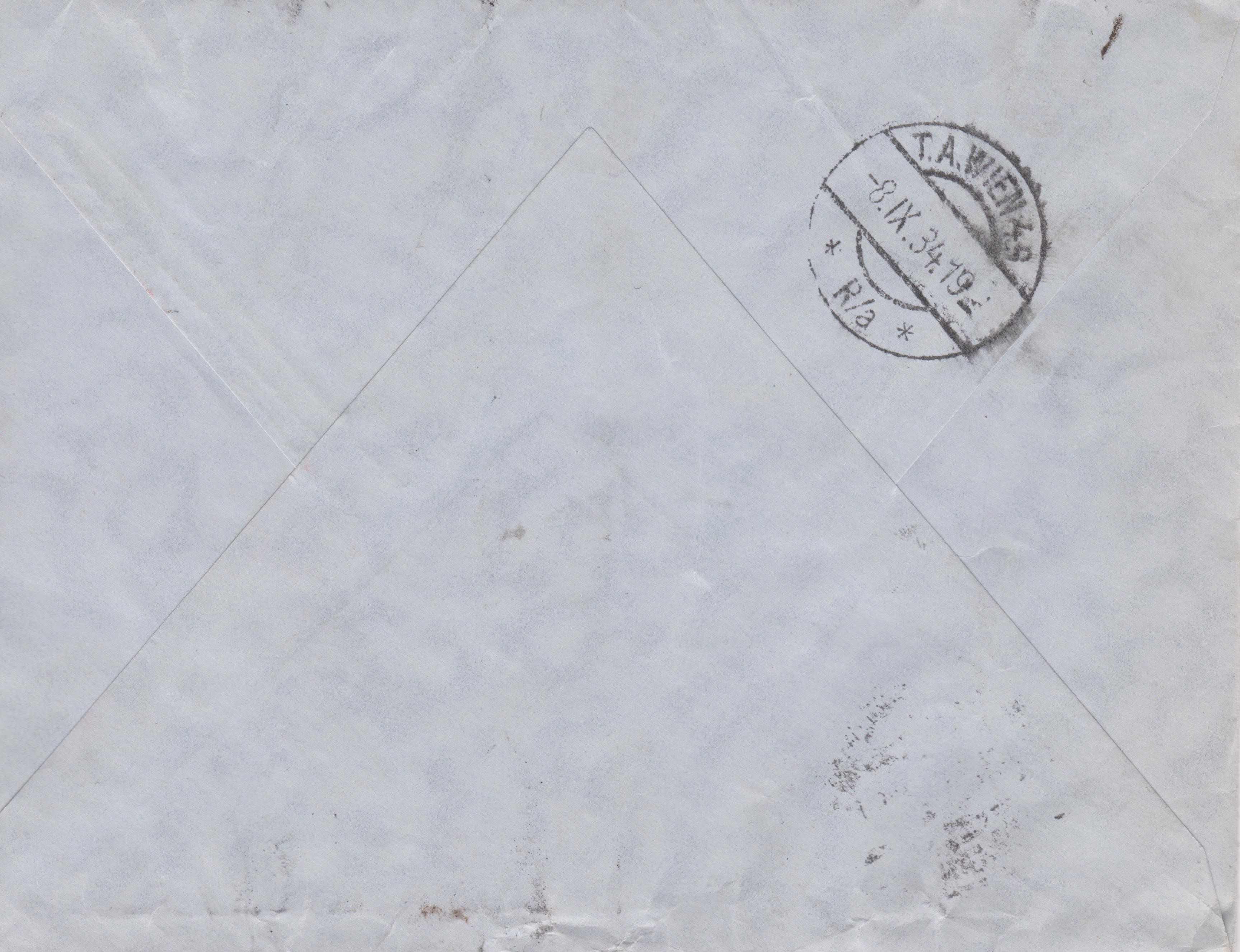 Brief "Durch Eilboten", adressiert nach "Wien, III", aufgegeben in Wien am 08.09.1934, befördert per Rohrpost nach "49":