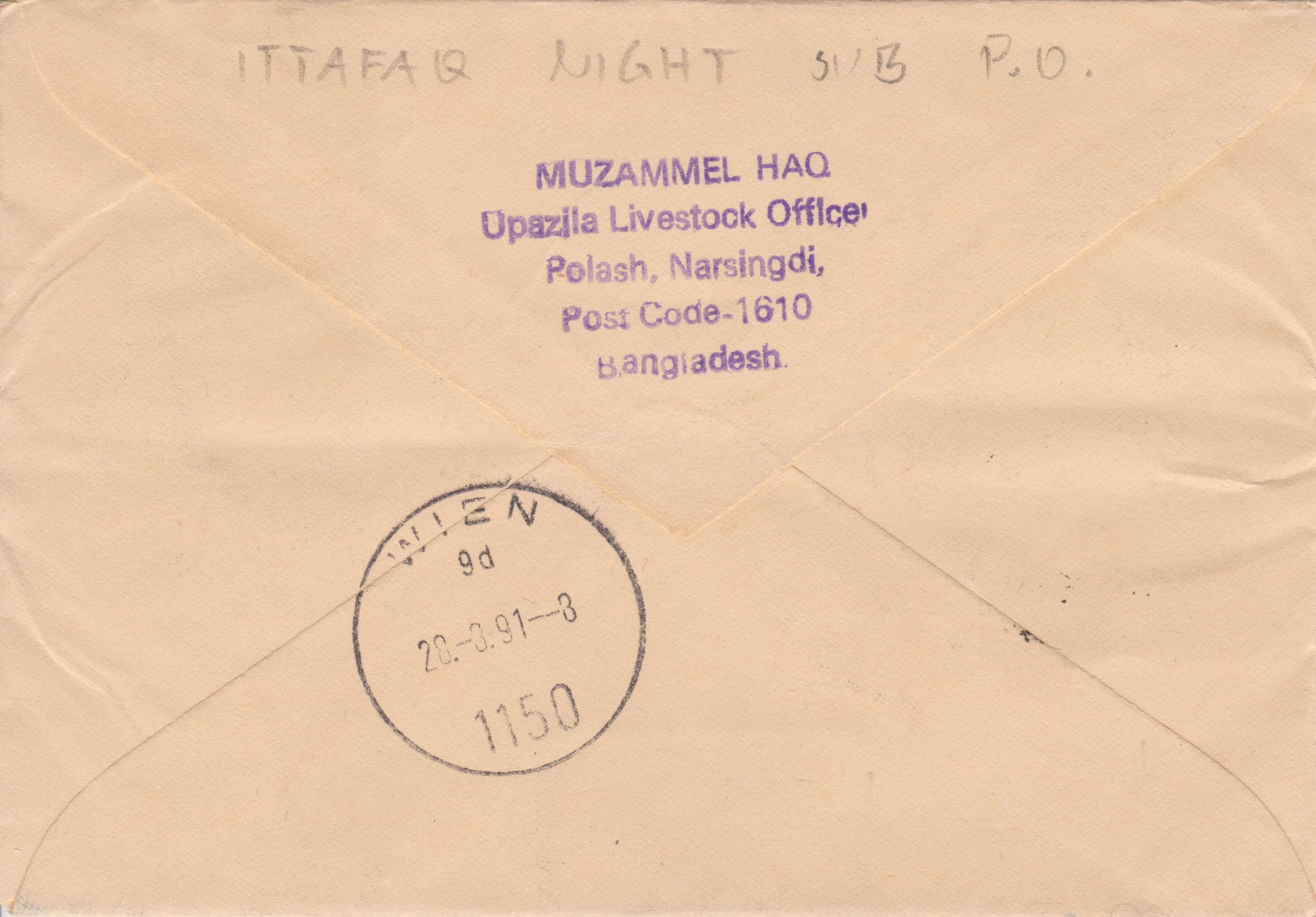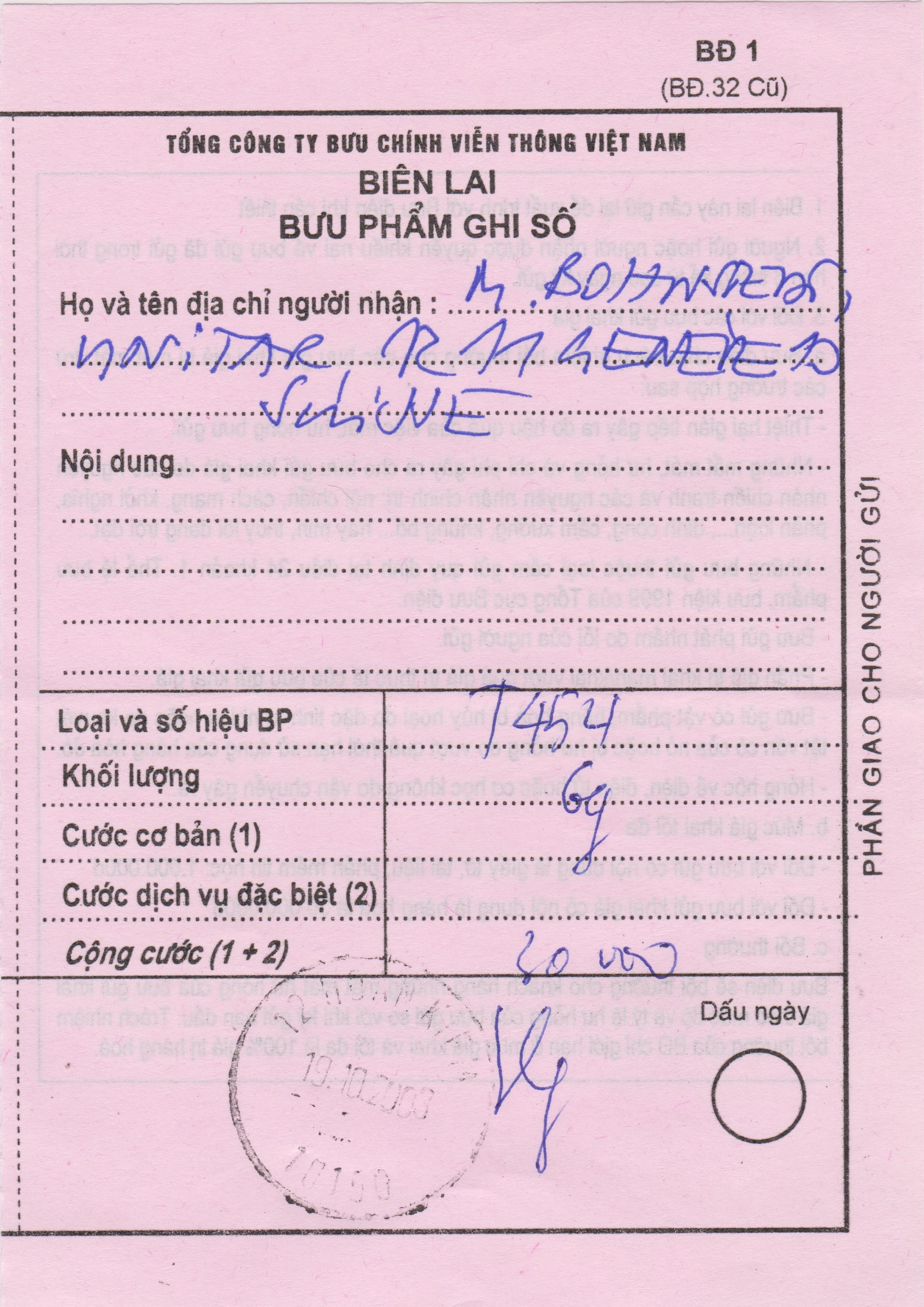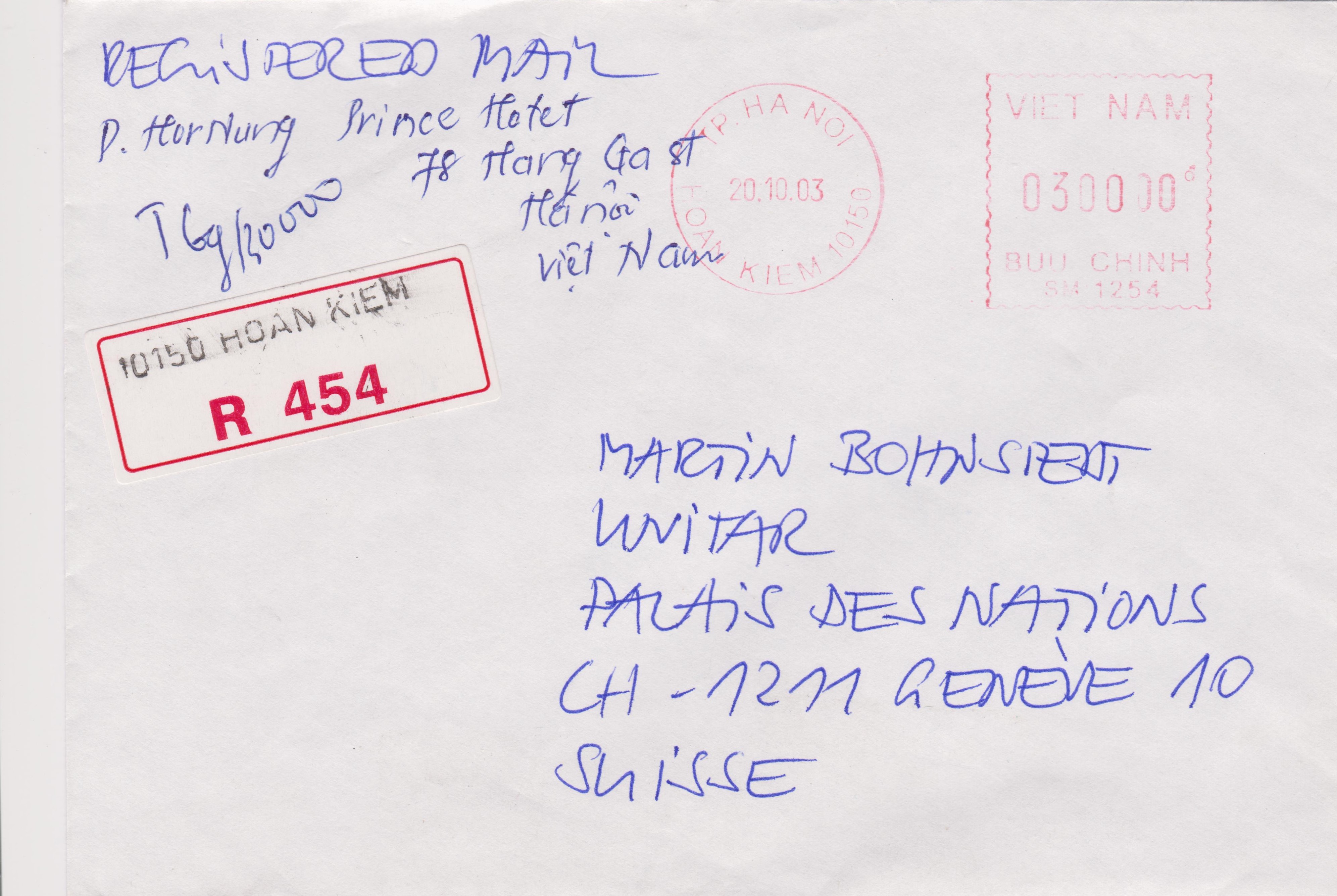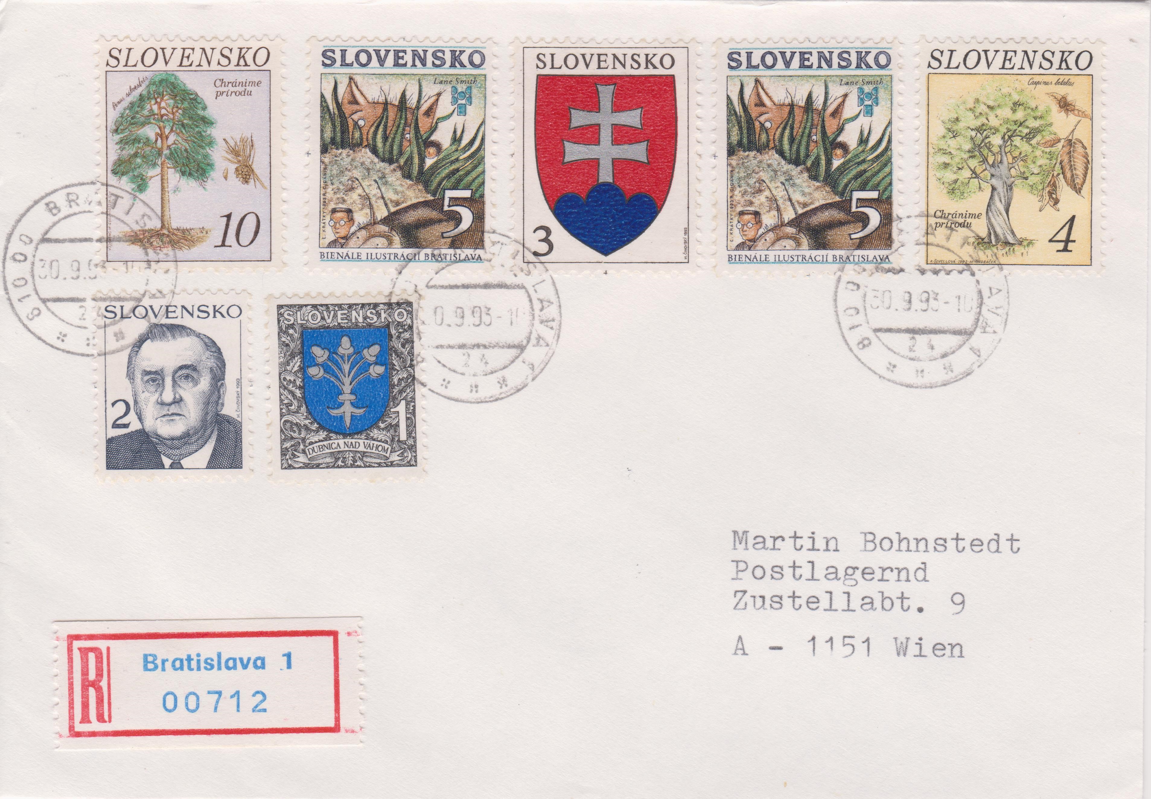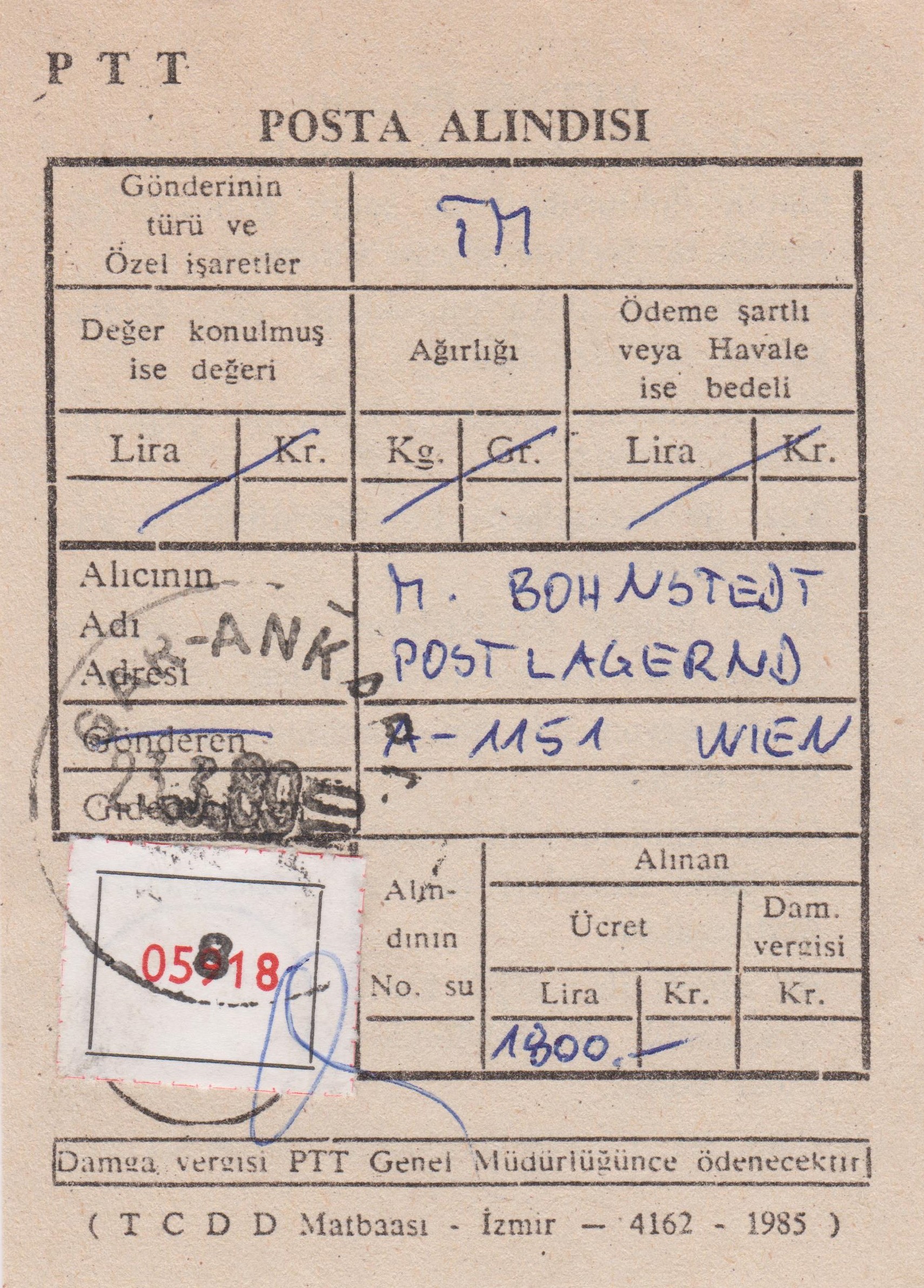 Einlieferungsschein zu einem eingeschriebenen Luftpostbrief nach Wien, Portostufe 60 US-Cents, Porto für ein Einschreiben 4,85 US-Dollar, aufgegeben am 01.02.1996 in MIAMI, FL (= Florida):