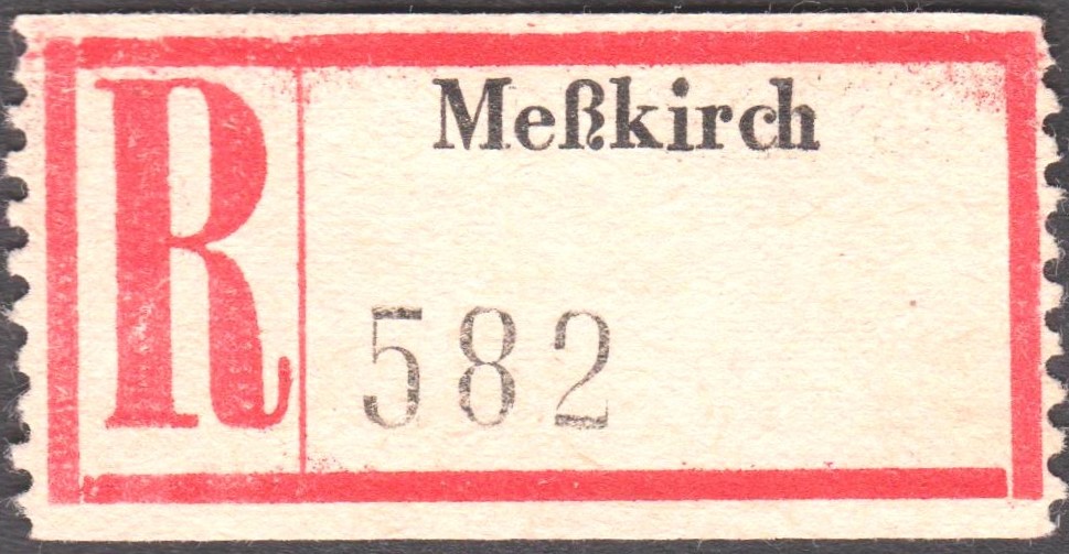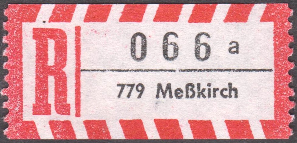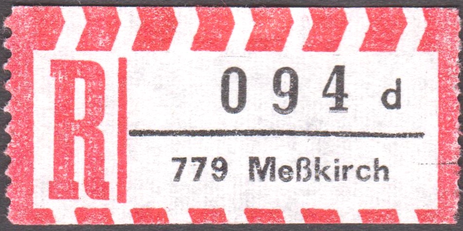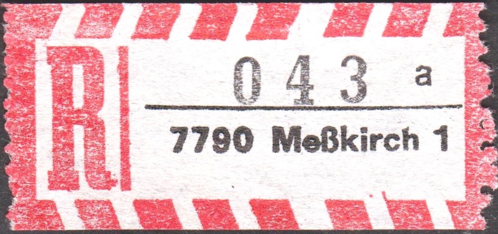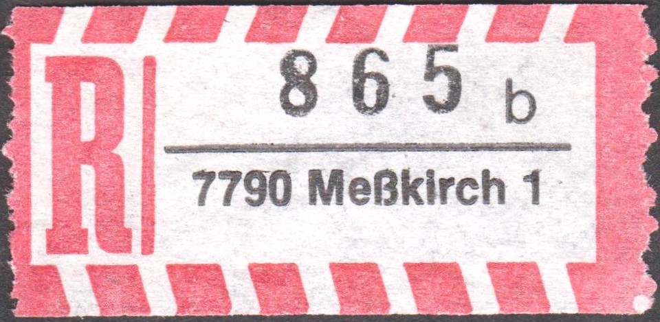 R-Zettel "7790 Meßkirch 1" mit Unterscheidungsbuchstabe "a", "b", "c" sowie "d":
