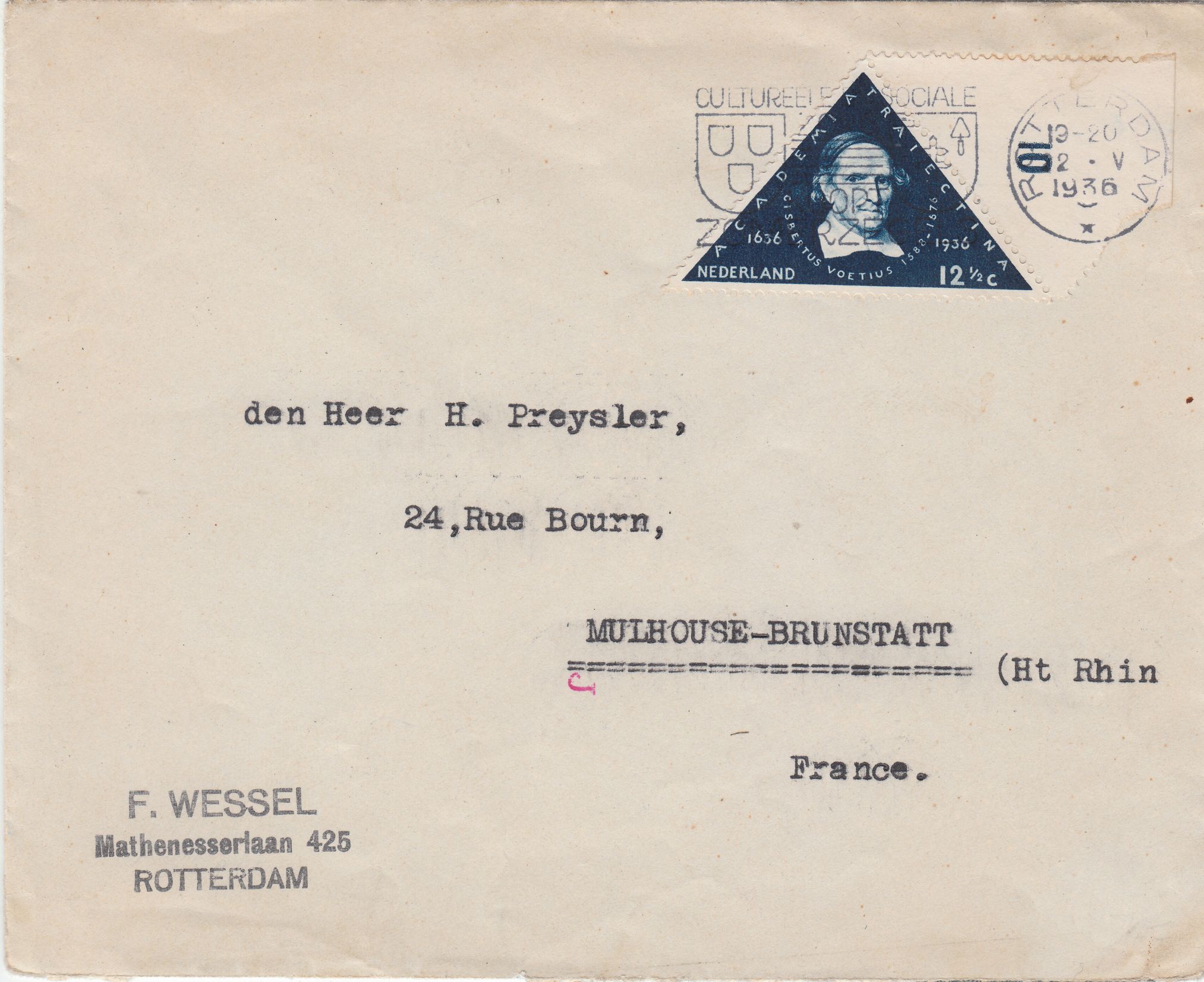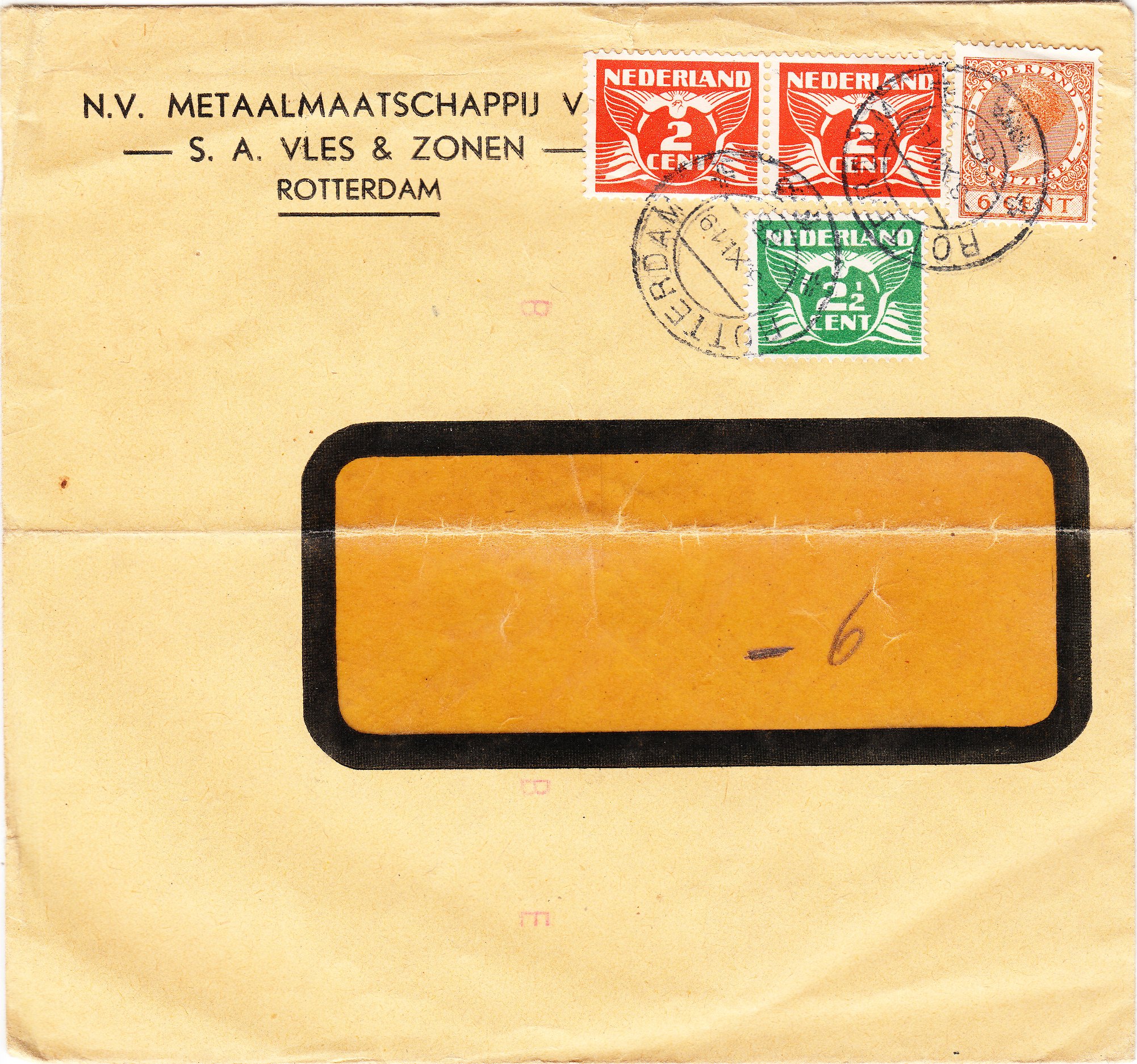Dieser Brief kann einen auf den ersten Blick wahrlich nicht überzeugen, handelt es sich doch "nur" um einen Fensterbrief, der waagerecht mittig geknickt ist, per Mischfrankatur frankiert und mit ganz normalem Tagesstempel ROTTERDAM entwertet wurde: