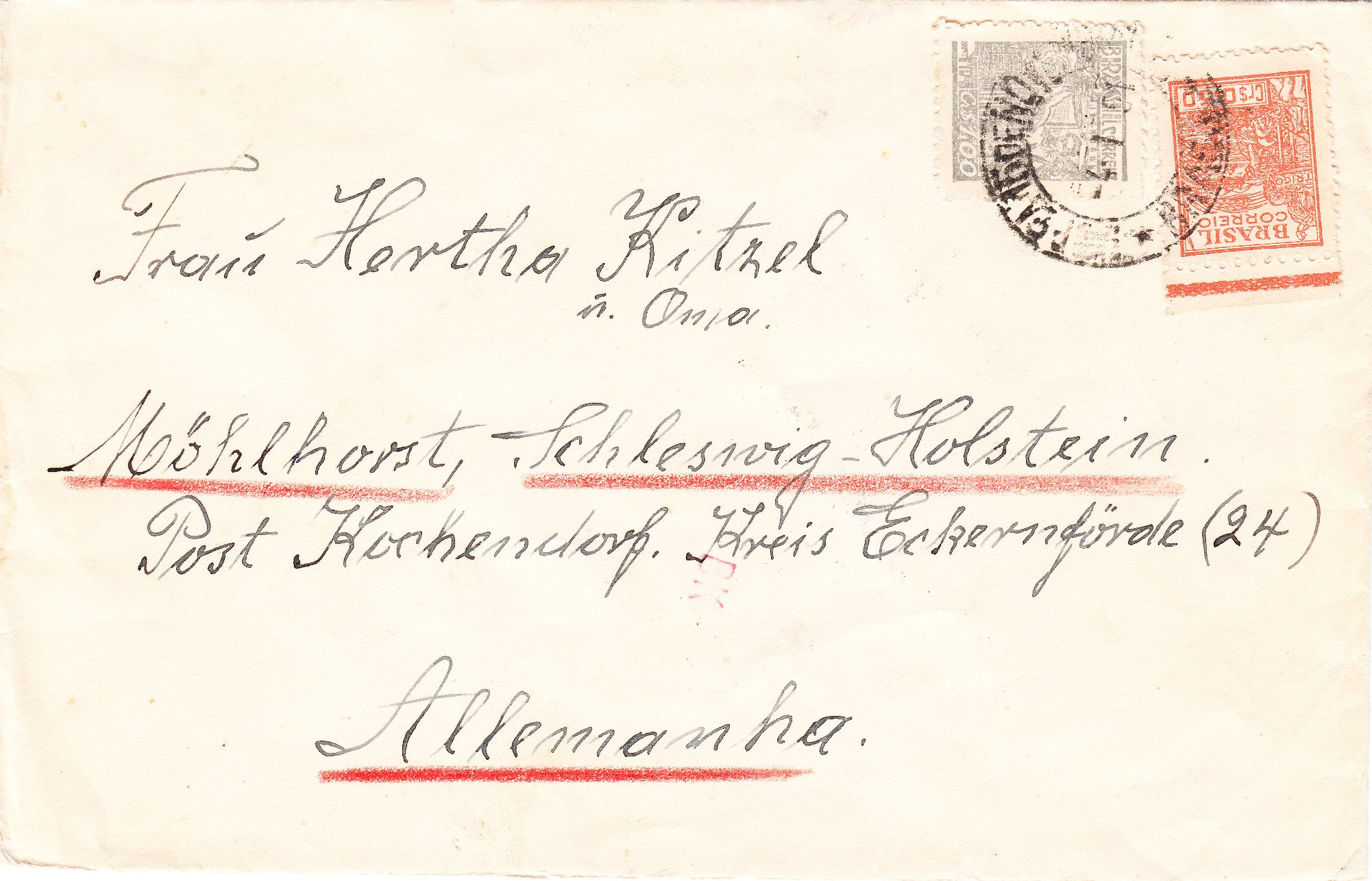 Dieser nach Deutschland adressierte Beleg wurde am 04.01.1951 in Brasilien aufgegeben: