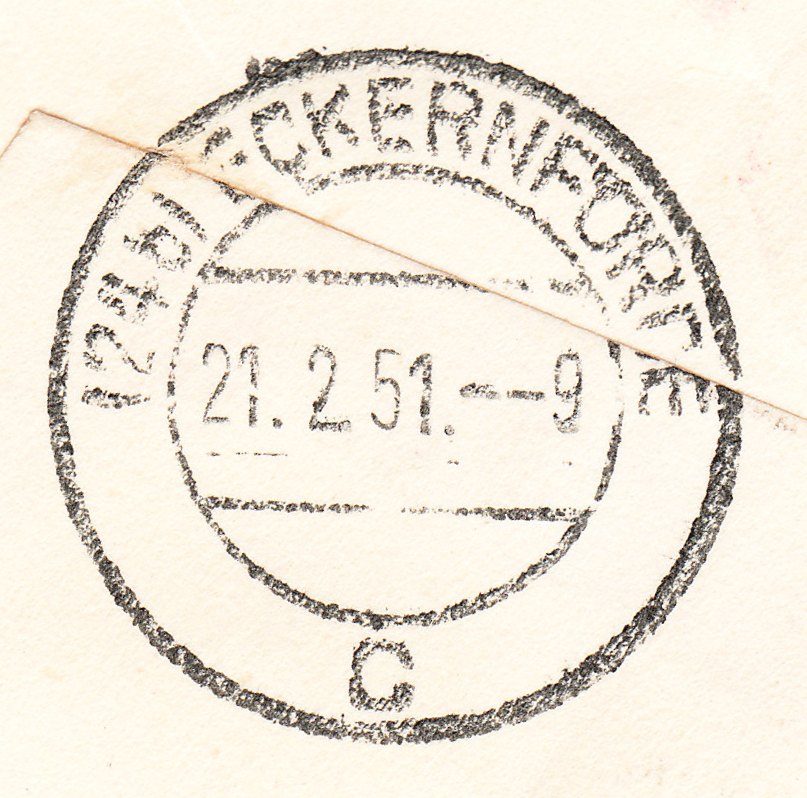 Der auf dem Seeweg transportierte Brief kam am 21.02.1951 in ECKERNFÖRDE an: