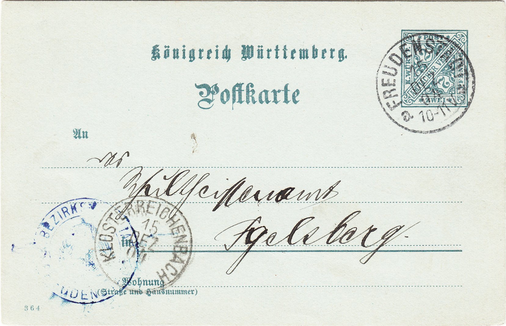 In Württemberg galt das ermäßigte Porto zum Ortstarif im Nachbarortsverkehr bis zu 10 km Entfernung.