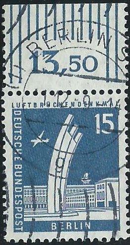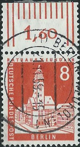 Eine gestempelte Marke zu 7 Pf vom Oberrand mit Reihenwertzähler 7,00. Das ist normalerweise die rechte obere Ecke, hier fehlt leider der senkrechte Seitenrand.