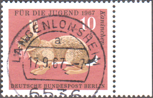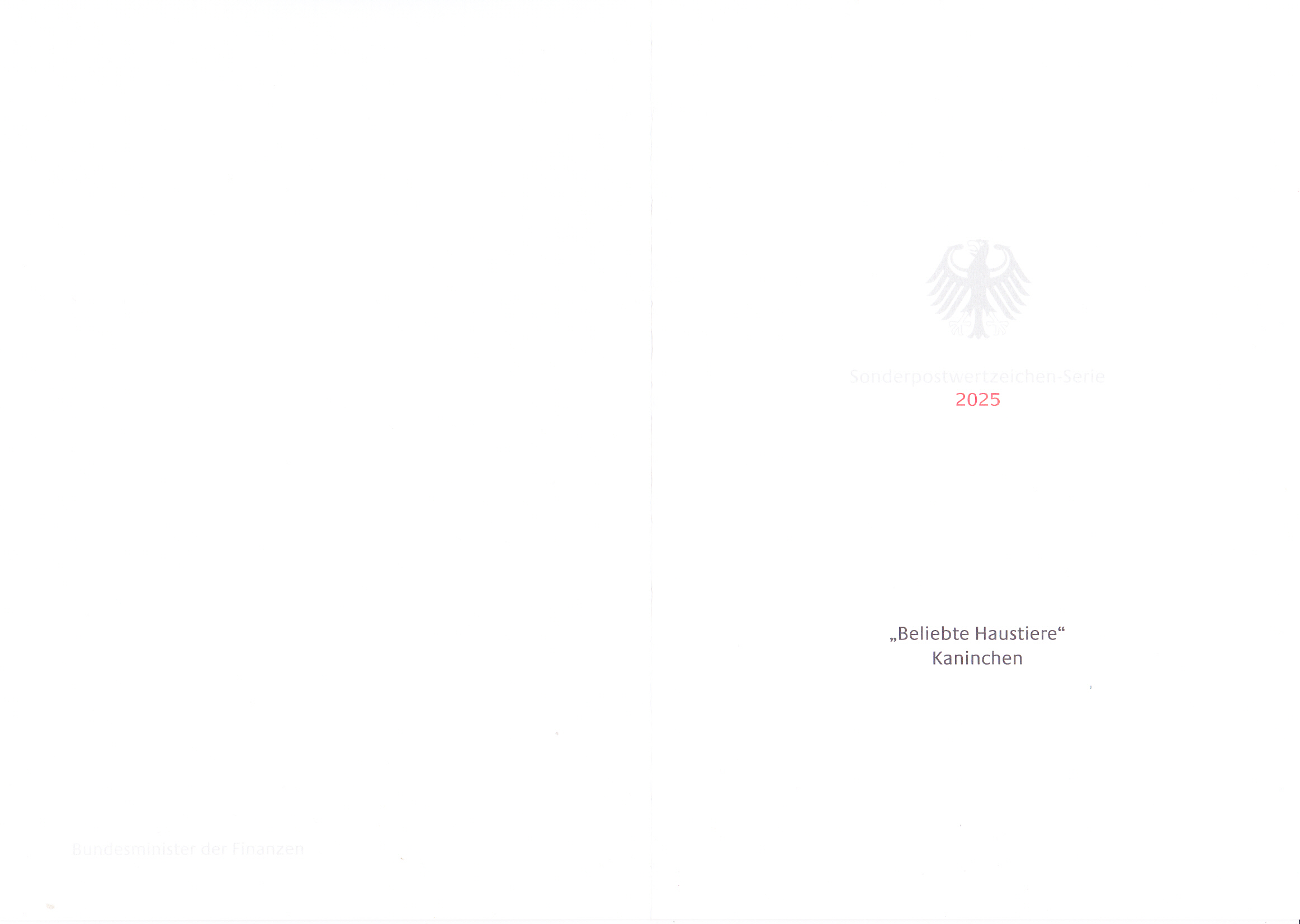 Ministerkarte des Bundesministers für Finanzen mit zwei Marken mit dem Motiv "Kaninchen" (MiNr 3899) aus der Serie "Haustiere" und den beiden Ersttagsonderstempel Bonn und Berlin.