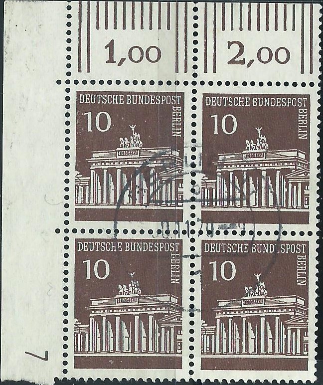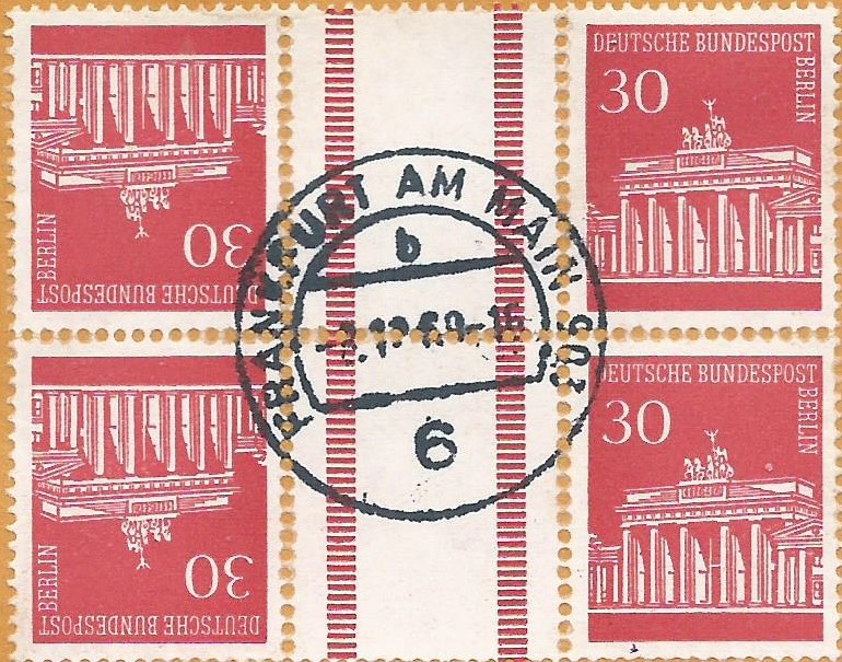 Richtig, der Plattenfehler!!! Genau genommen Mi.Nr. 288 I „waagerechter weißer Querstrich zwischen 3. Und 4. Säule des Tores“. Der wertet lose gestempelt schon mit 220 Mi€ und die Briefbewertung ist sogar 350 Mi€. Und dazu haben wir hier noch einen echt gelaufenen Brief ins Ausland mit rückseitigen Durchgangsstempeln der USA, also Bedarf. Ich denke mal, da habe ich wohl beim Kauf nichts falsch gemacht, oder? Wie sagen wir es immer so passend: Augen auf bei Tausch und Kauf!