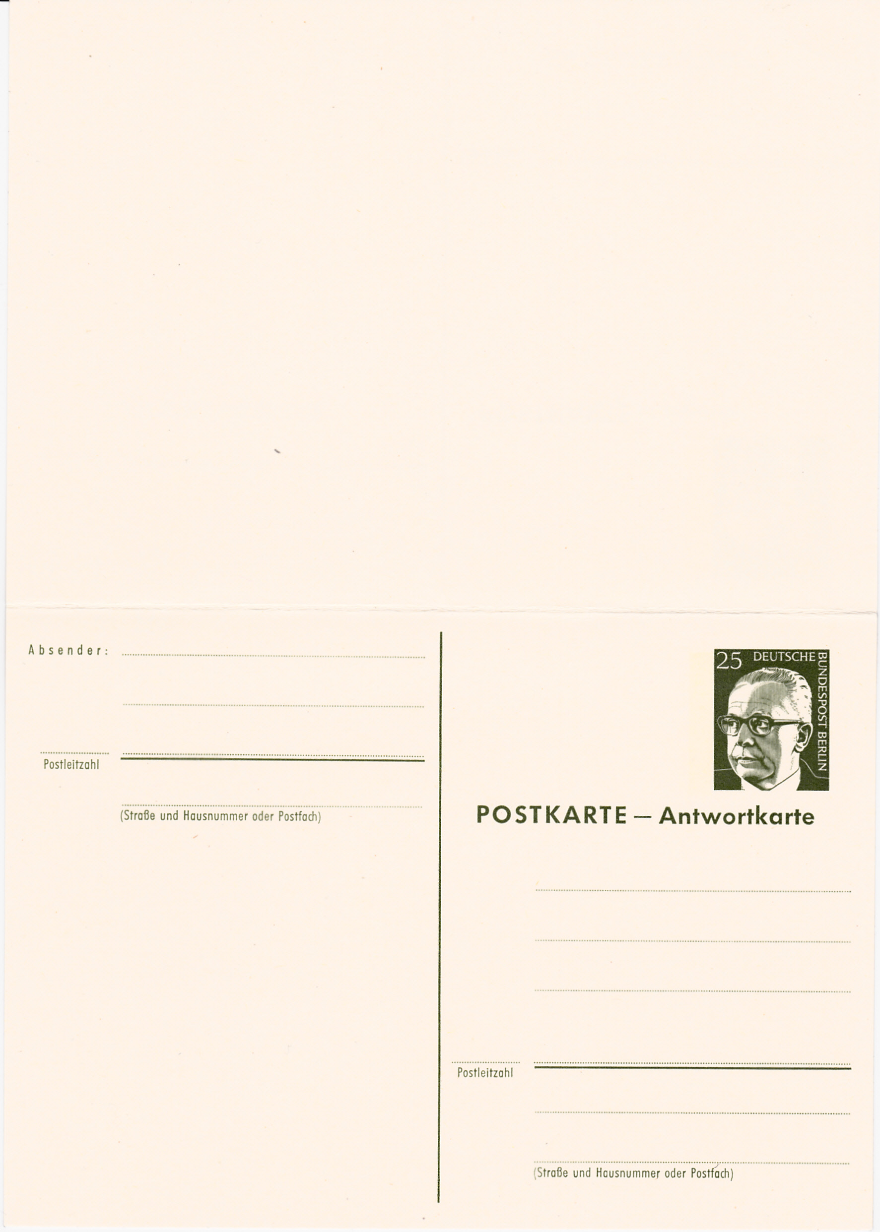 Diese Postkarte mit dem Wertstempel Heinemann zu 25Pf (MiNr P 82) wurde am Schalter verkauft.