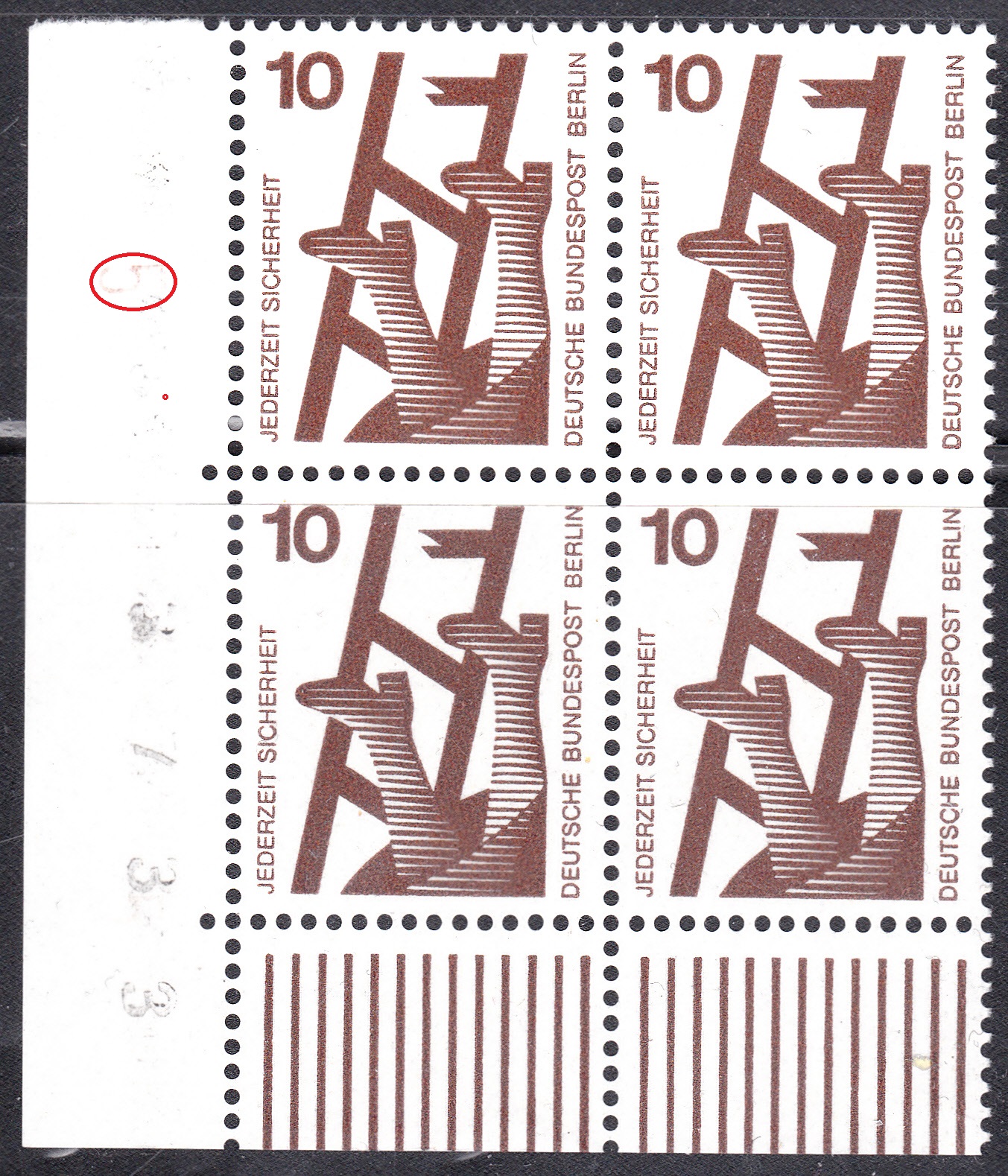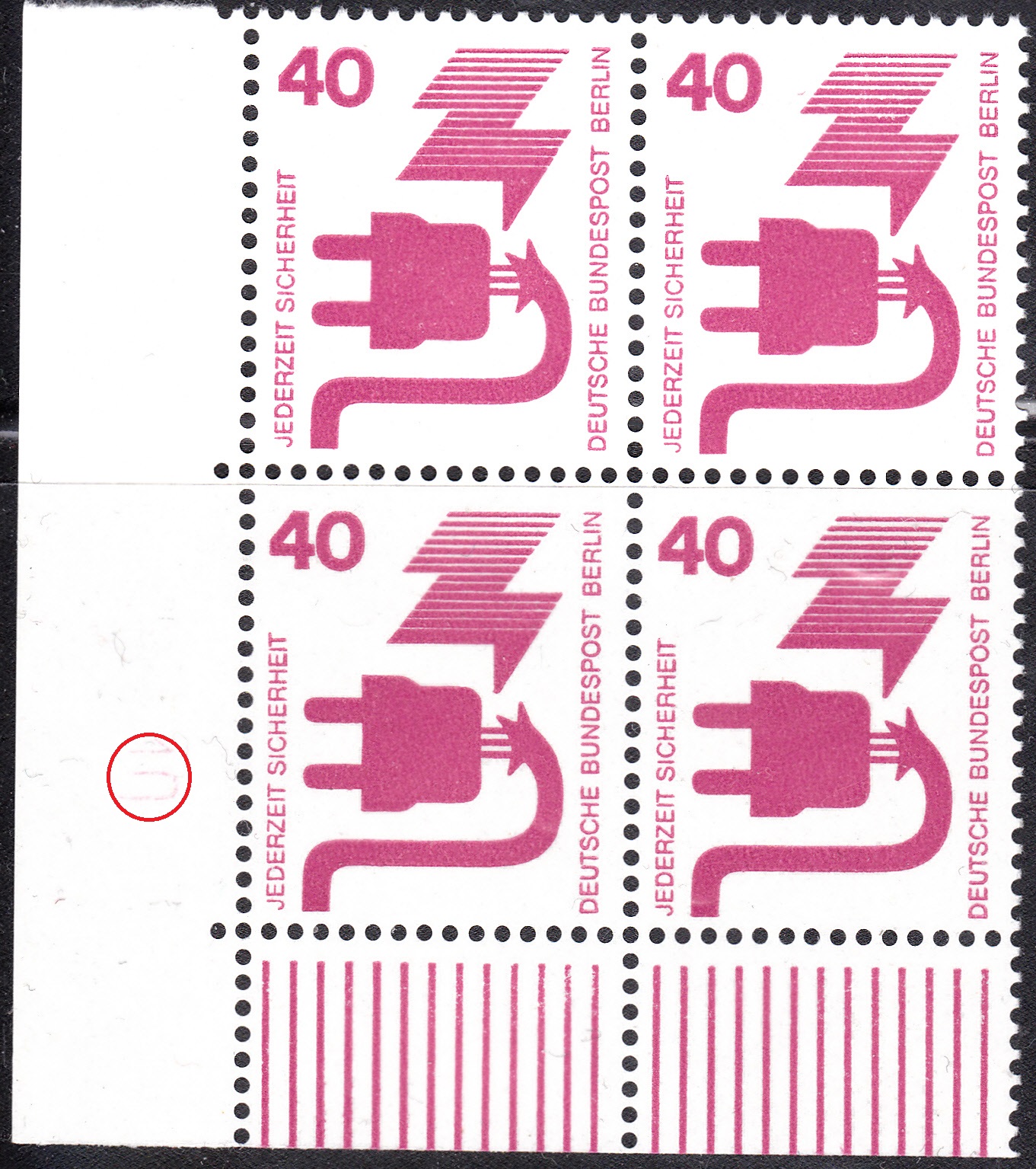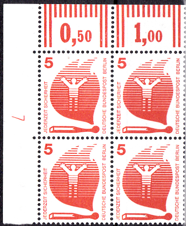 Die Postwertzeichen der parallel in Berlin erschienenen Ausgabe der Bund-Dauerserie Unfallverhütung tragen den Zusatz "BERLIN".
