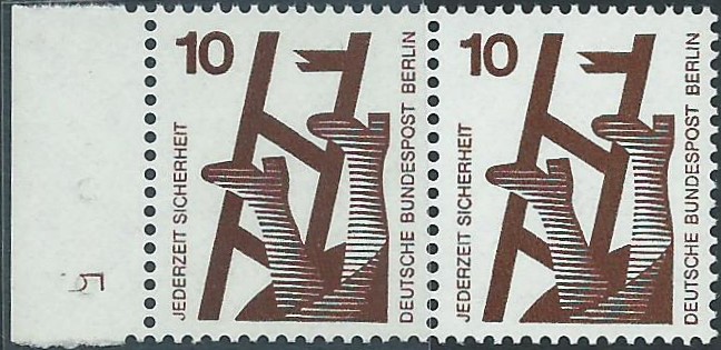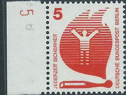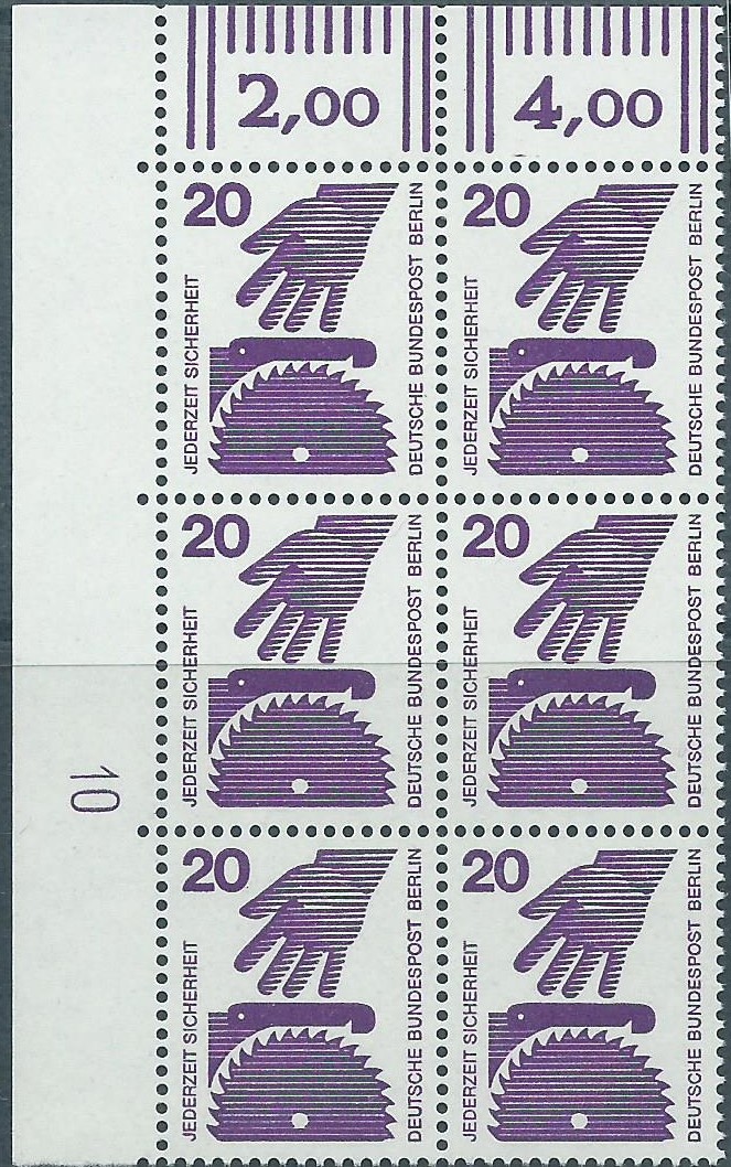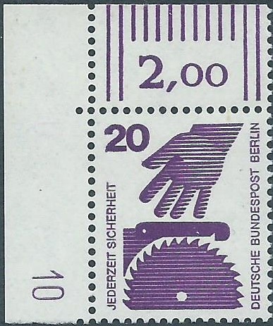 von den Marken der Ausgabe Unfallverhütung Berlin kann ich einige postfrische Stücke mit Druckerzeichen (DZ) zeigen.