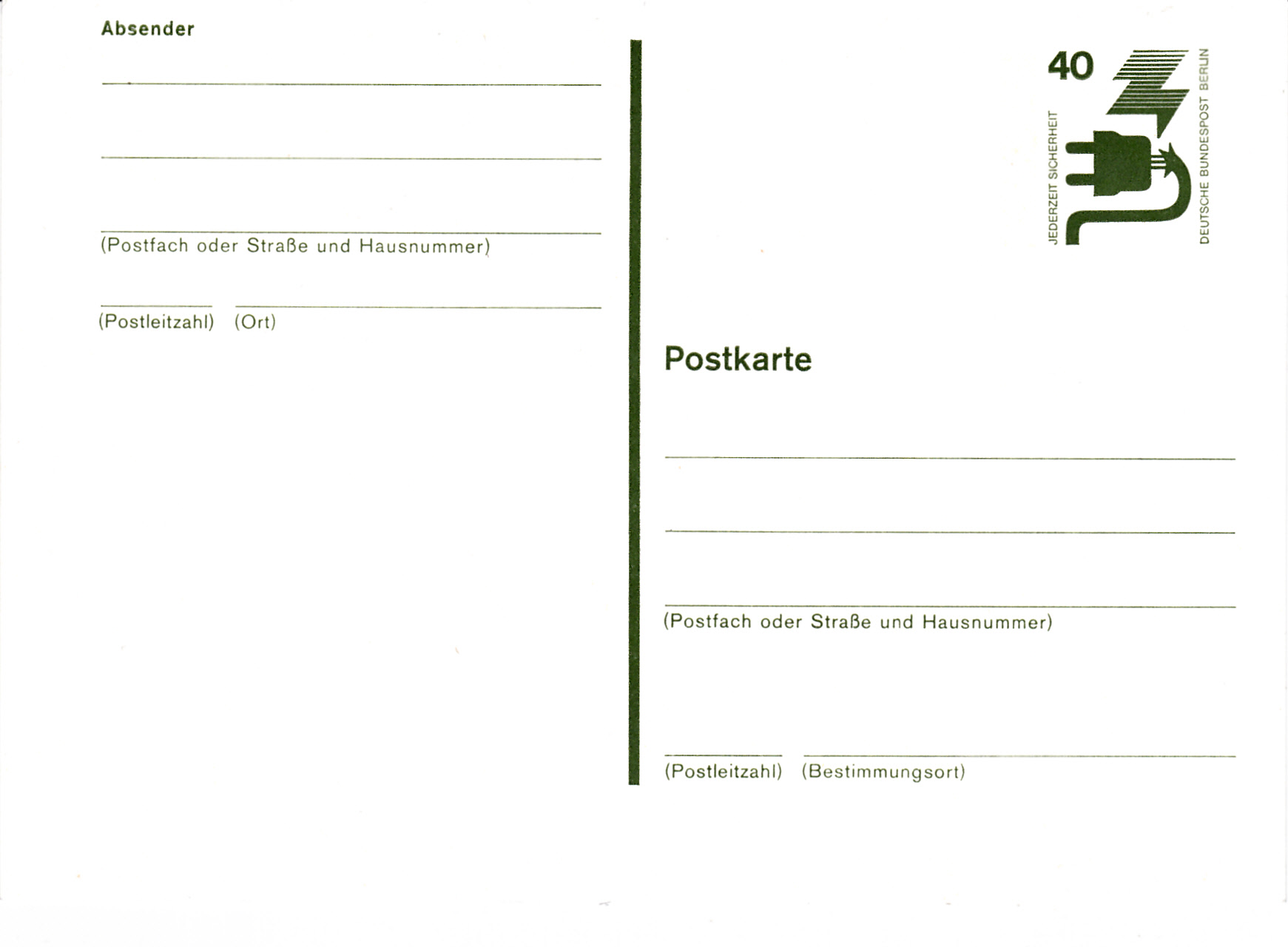 Es gibt diese Postkarten auch mit Antwortkarte. Hier die Karte für den Ortsverkehr (MiNr P 101).