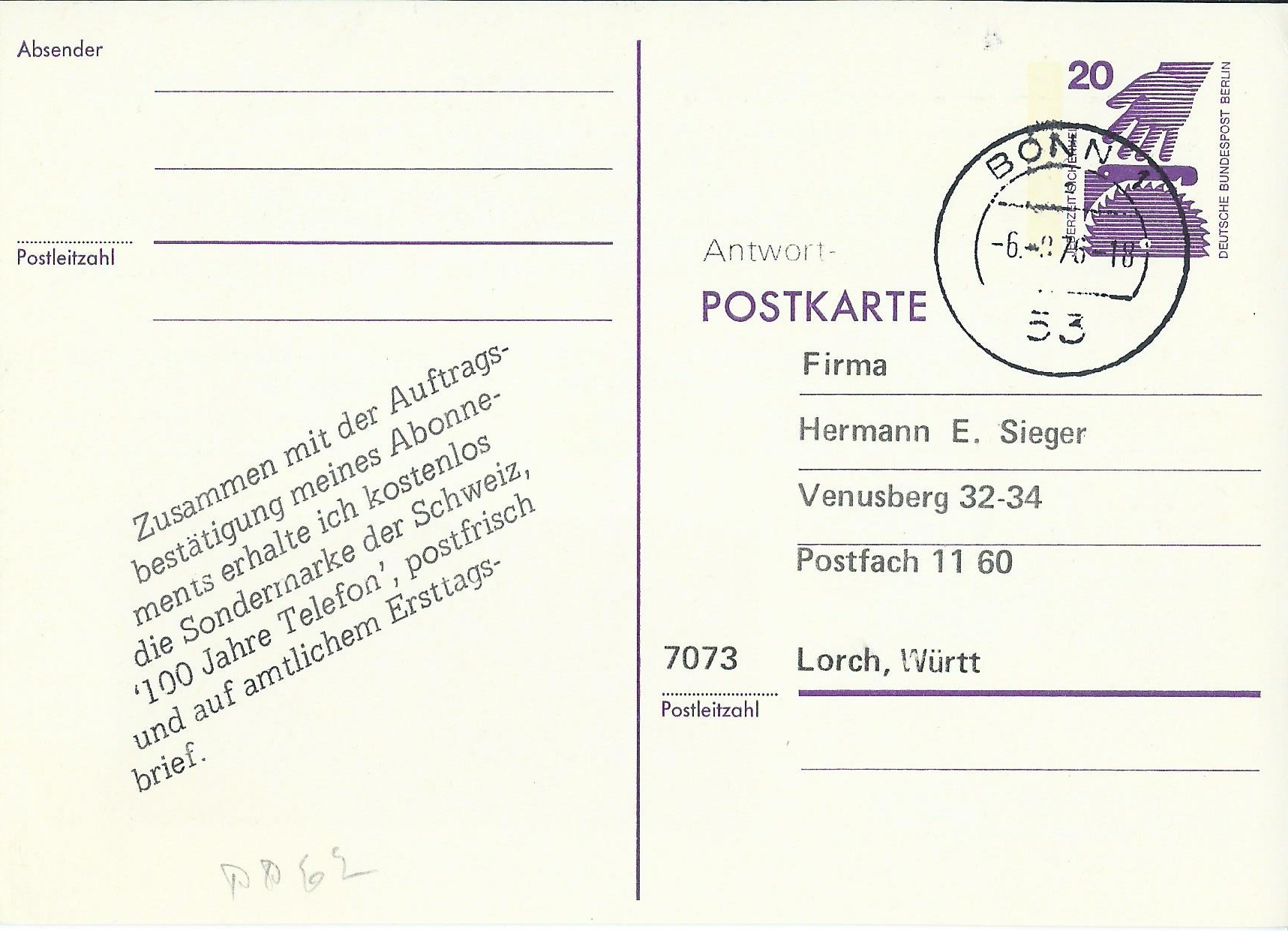 Und als letzte Karte die mit Antwortkarte für den Fernverkehr (MiNr P 102):