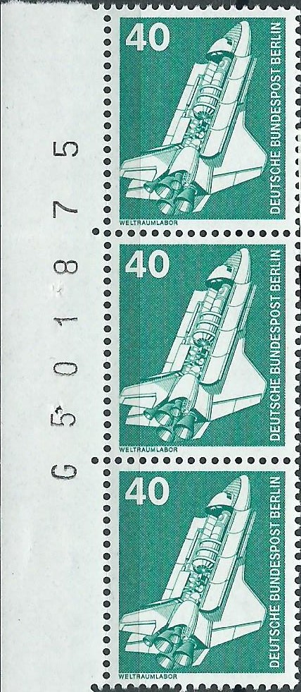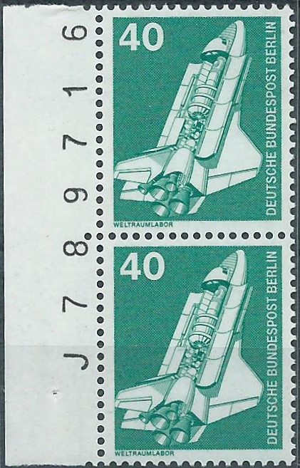Der Wert zu 40 Pf als waagerechtes Paar vom Oberrand mit Reihenwertzählern 12,00 und 16,00 auf einem Standartbrief. Gestempelt wurde er am 9.12.84 in Berlin 11.