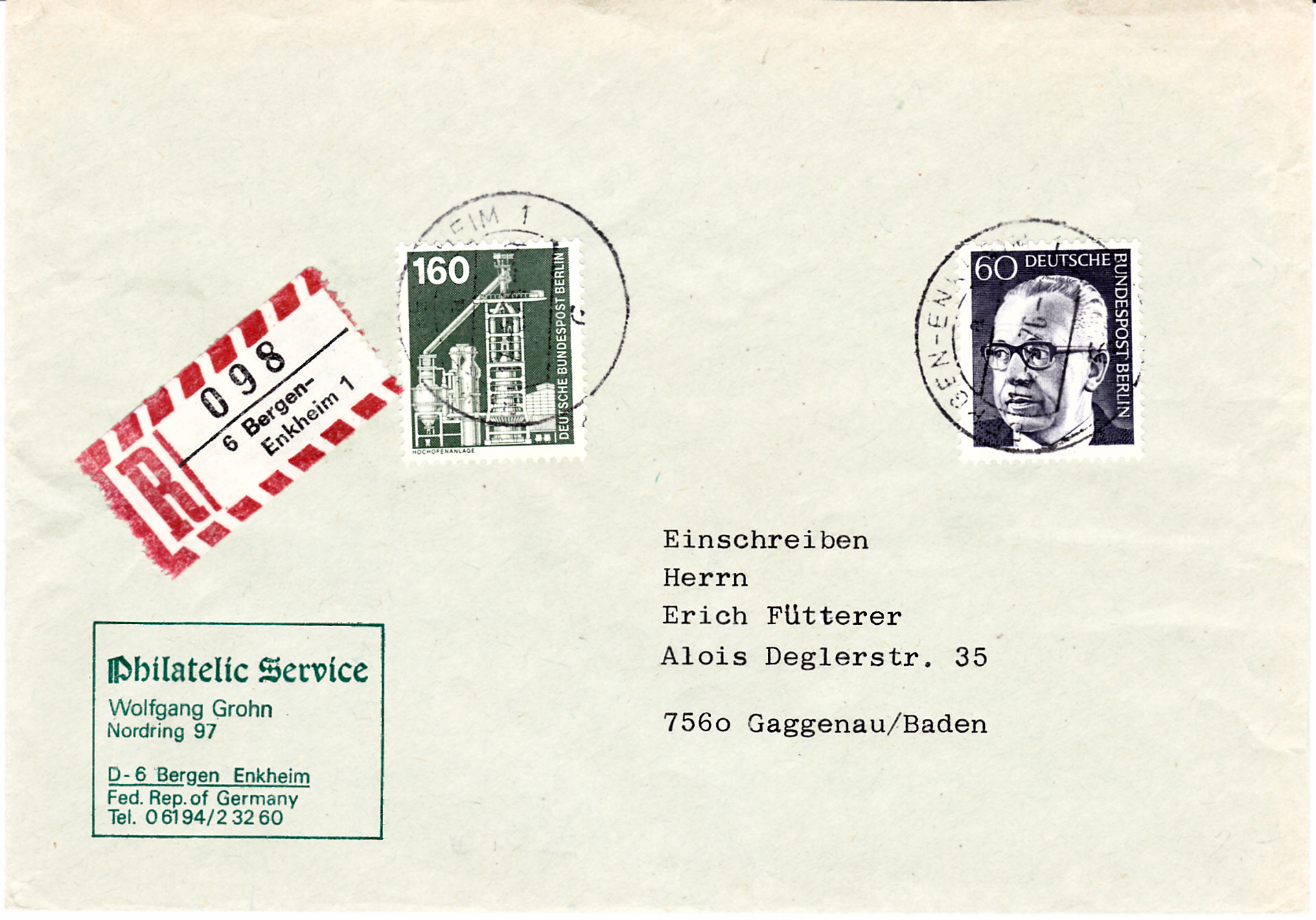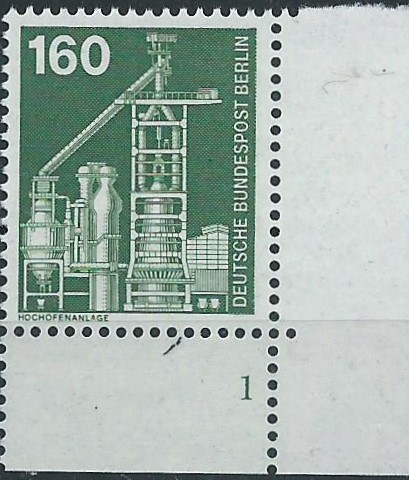 den hier gezeigten Beleg habe ich eigentlich nur mitgenommen, weil er neben weiteren Marken eine schöne linke untere Bogenecke der Industrie und Technik-Marke zu 160 Pf als Frankatur aufweisen kann. Noch dazu ein schöner Vollstempel von Berlin vom 2.5.80! Diese Markenausgabe hat ja meist Probleme bereitet, schöne Bedarfsstempel hervorzubringen, da die Markenfarbe die Stempelfarbe schlecht aufgenommen hat. Und hier kann man ja nun wirklich nicht meckern, sauberer Berlin-Bedarfsstempel auf Berlinausgabe, Sammlerherz, was willst Du mehr? Und das für einen Euro…