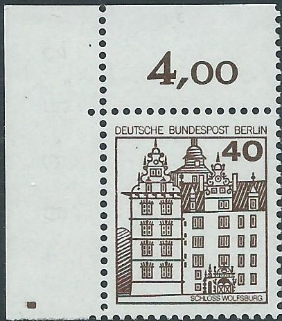 der Wert zu 40 Pf postfrisch aus der linken oberen Bogenecke mit Plattenzeichen: