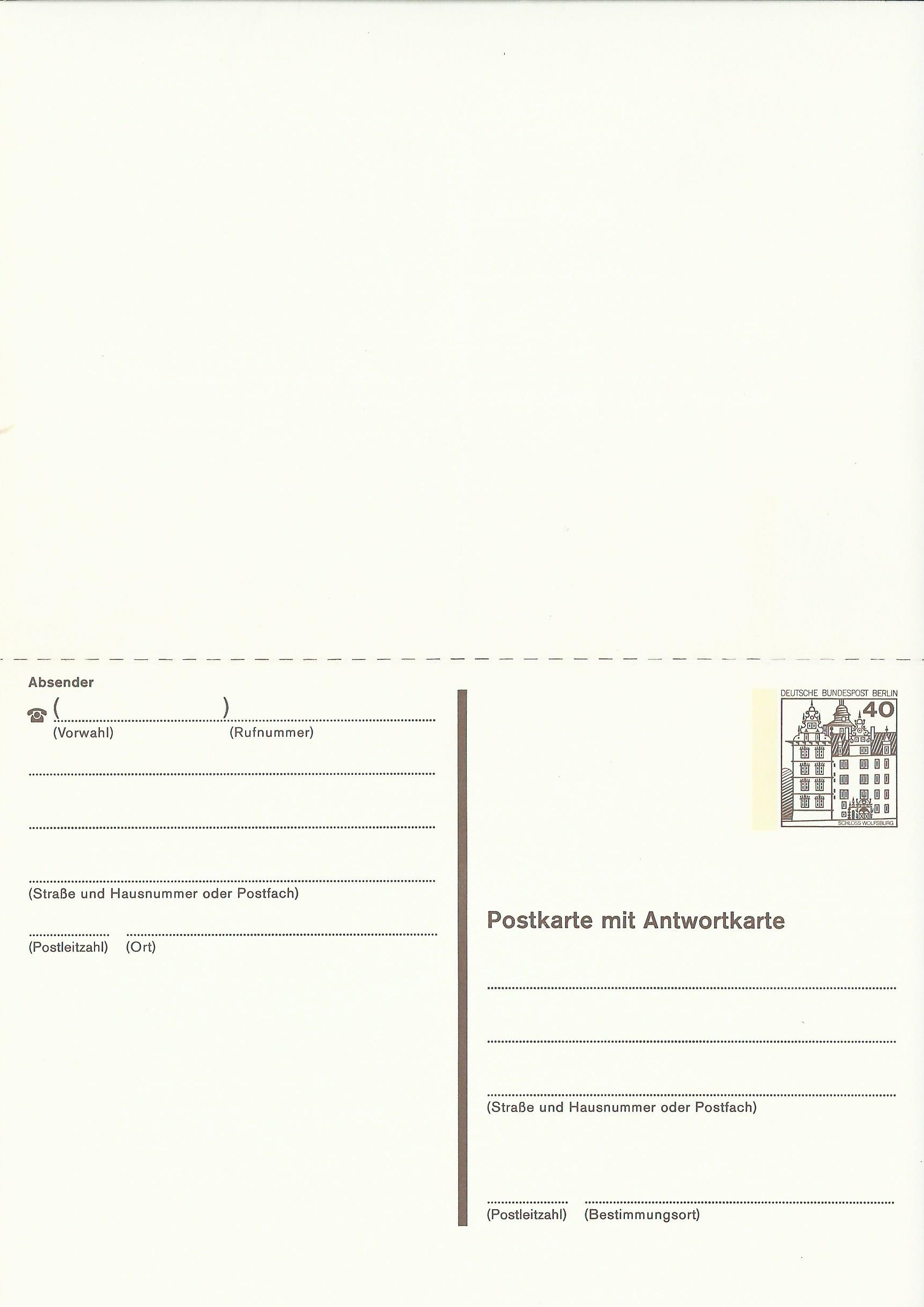 Dazu eine ungebrauchte Postkarte mit Antwortkarte zu 40 Pf: