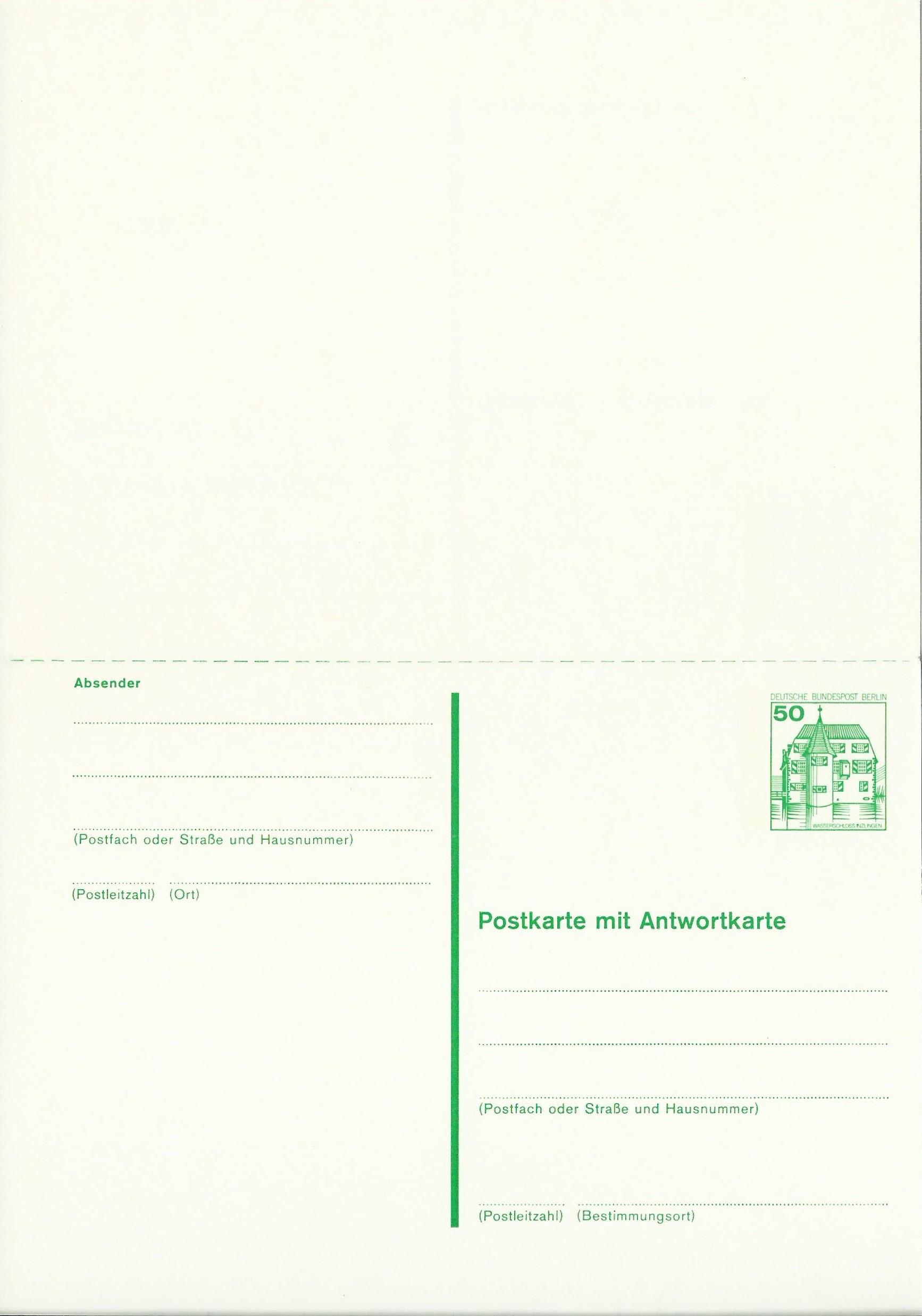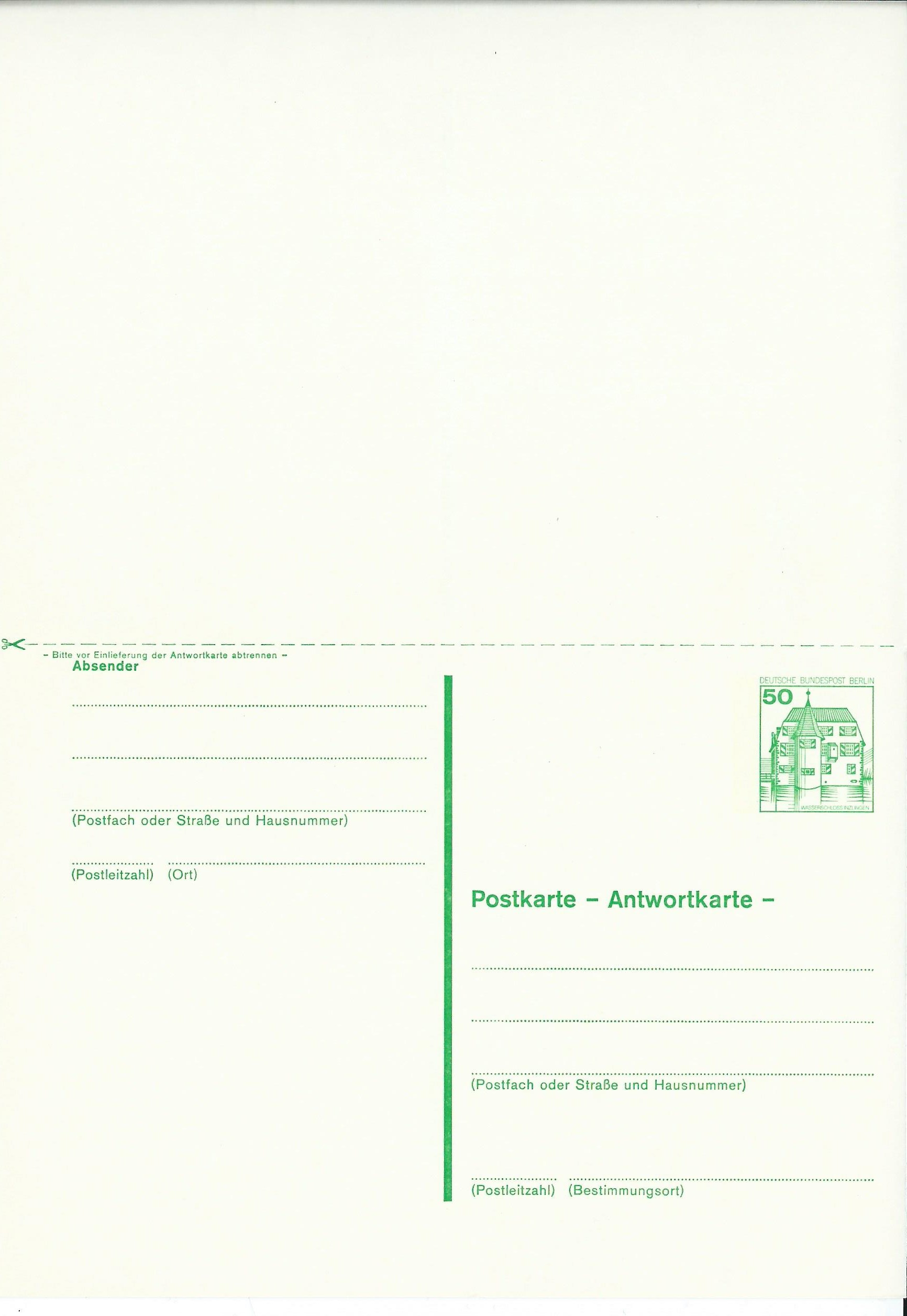 Dazu eine ungebrauchte Postkarte mit Antwortkarte zu 50 Pf: