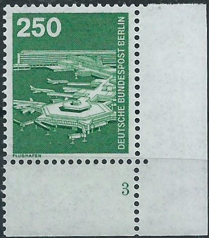 der Wert Industrie und Technik zu 250 Pf als postfrisches rechtes Eckrandstück mit Formnummer 3: