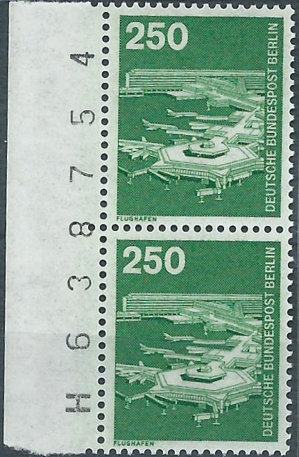 Der 250 Pfennig-Wert wurde am 15.7.1982 an die Berliner Postschalter gebracht. Hier ein senkrechtes Paar mit Berliner Tagesstempel.