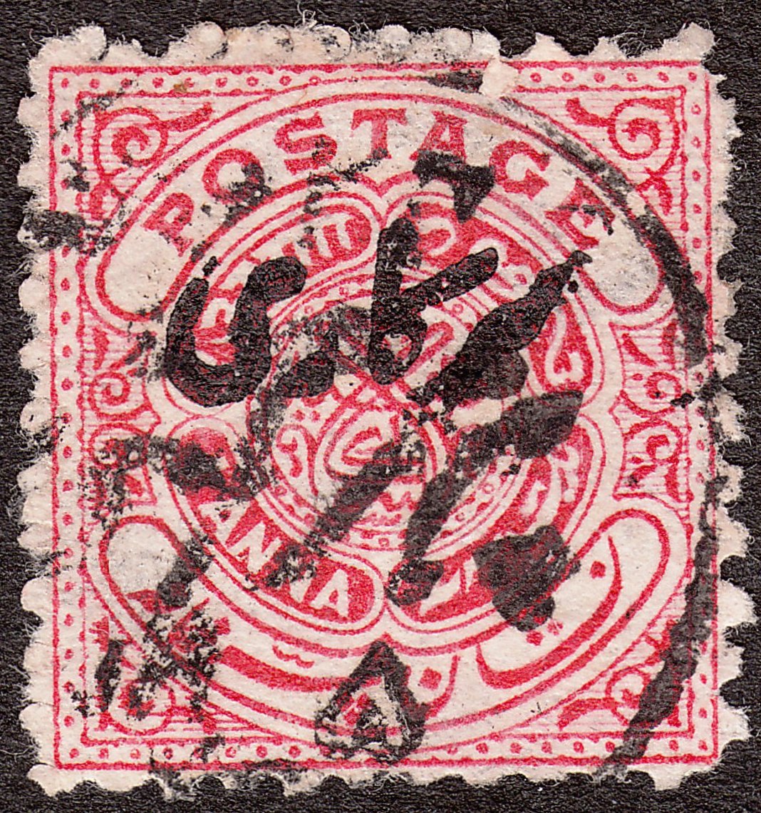 Die Freimarke Hyderabad MiNr. 17 wurde mit Aufdruck "Sarkari" = Dienst in Schwarz in Type III versehen als Dienstmarke MiNr. D 24 ausgegeben:
