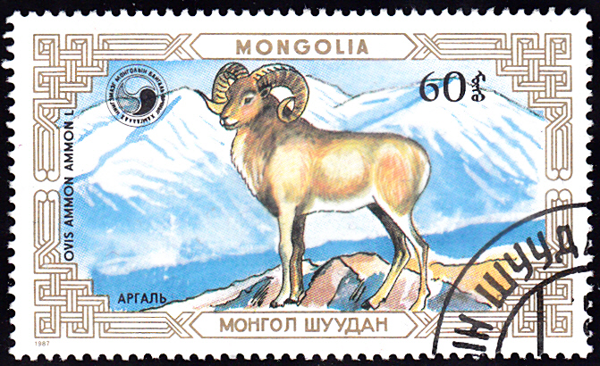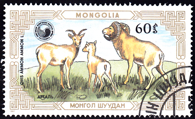 Aus einer Serie "Wildschafe" der Mongolei zeige ich diese Marke (MiNr 1869) mit einer "Familie" von drei Altai-Wildschafen oder Altai-Argali (Ovis ammon), die im südlichen Sibirien und in der westlichen Mongolei im Altai und im Sajangebirge vorkommen.