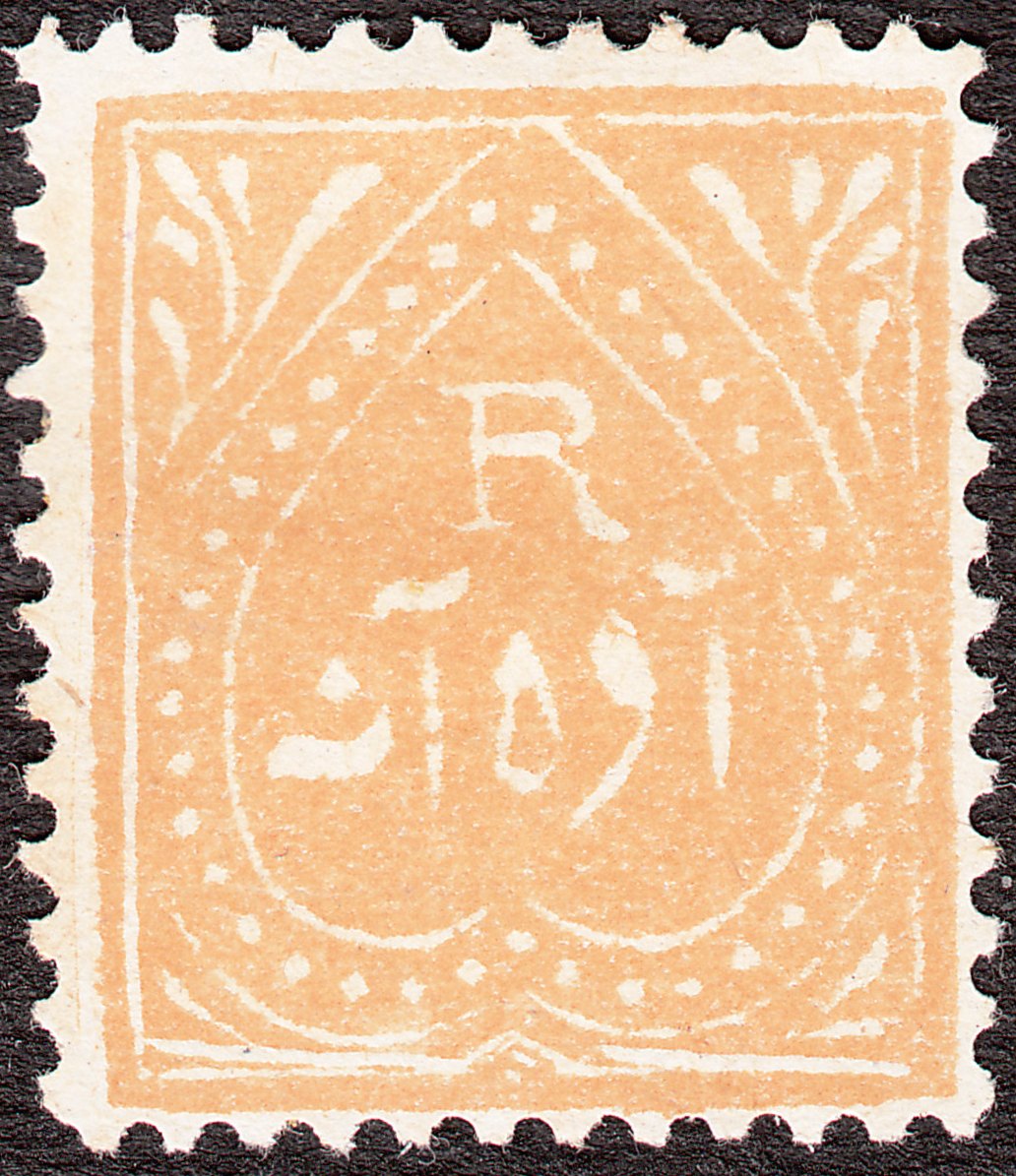 Diese Freimarke zu 1/2 Anna in gelb gezähnt 12 erschien 1885 auf dünnem, gewöhnlichem, gelblichem Papier und wurde katalogisiert als Jind MiNr. 14:
