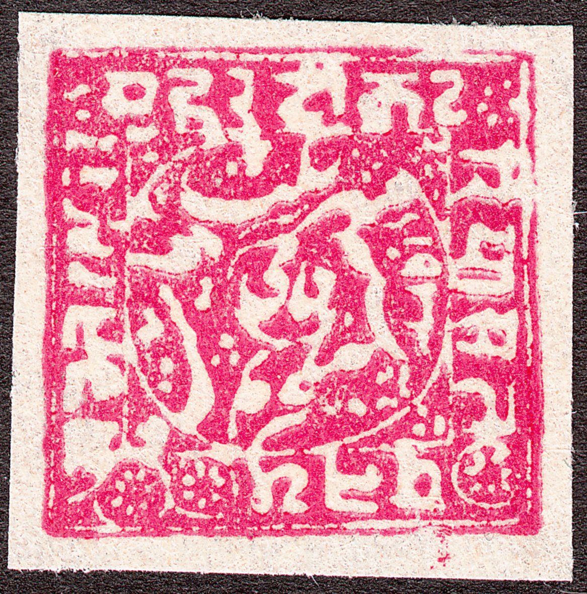 Die Freimarke zu 6 Pies in rot erschien 1876 und wurde katalogisiert als Punch MiNr. 1.