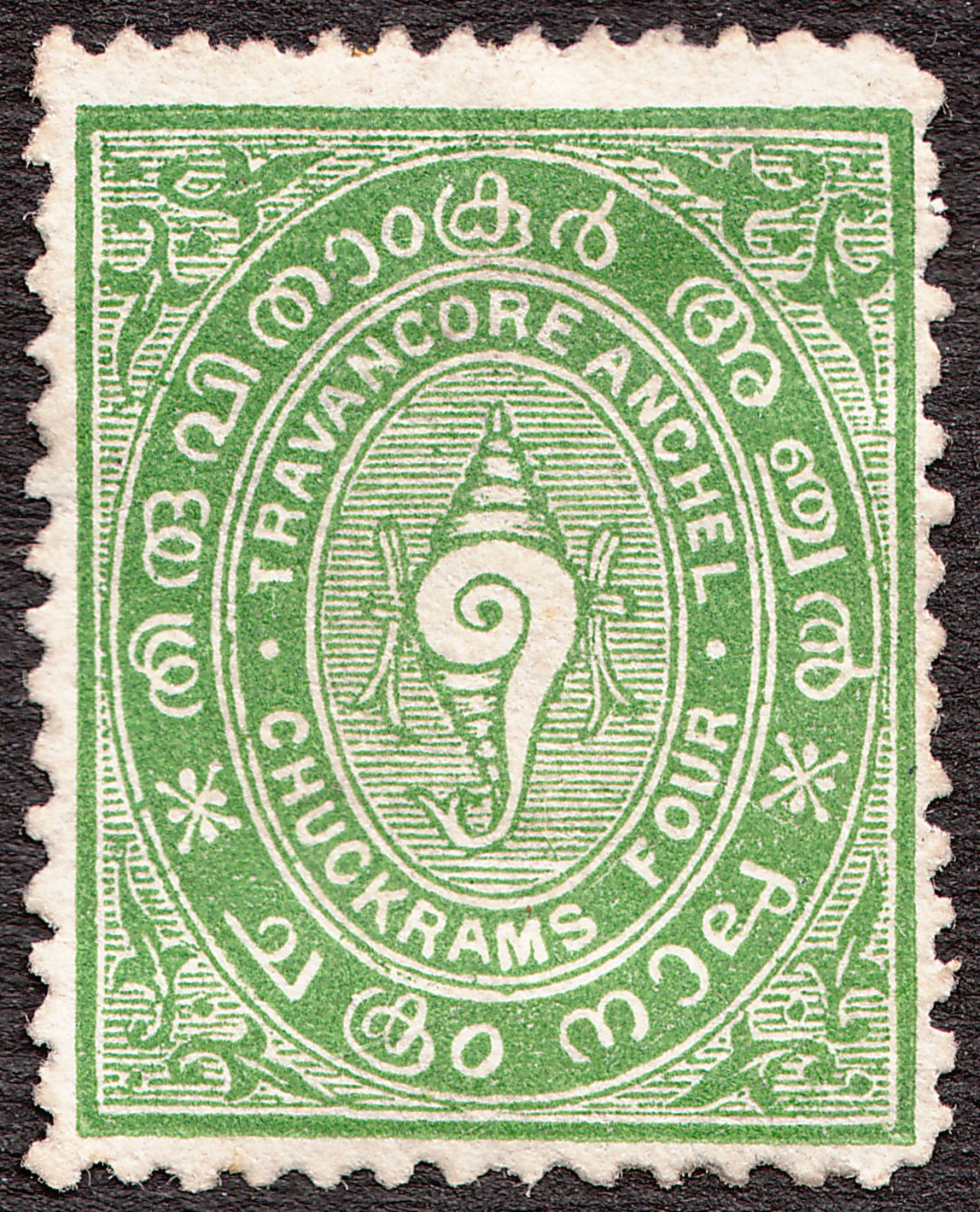 Tranvancore war ein Staat an der Südwestküste Indiens, der von 1888 bis 1946 insgesamt 50 Postwertzeichen ausgab.