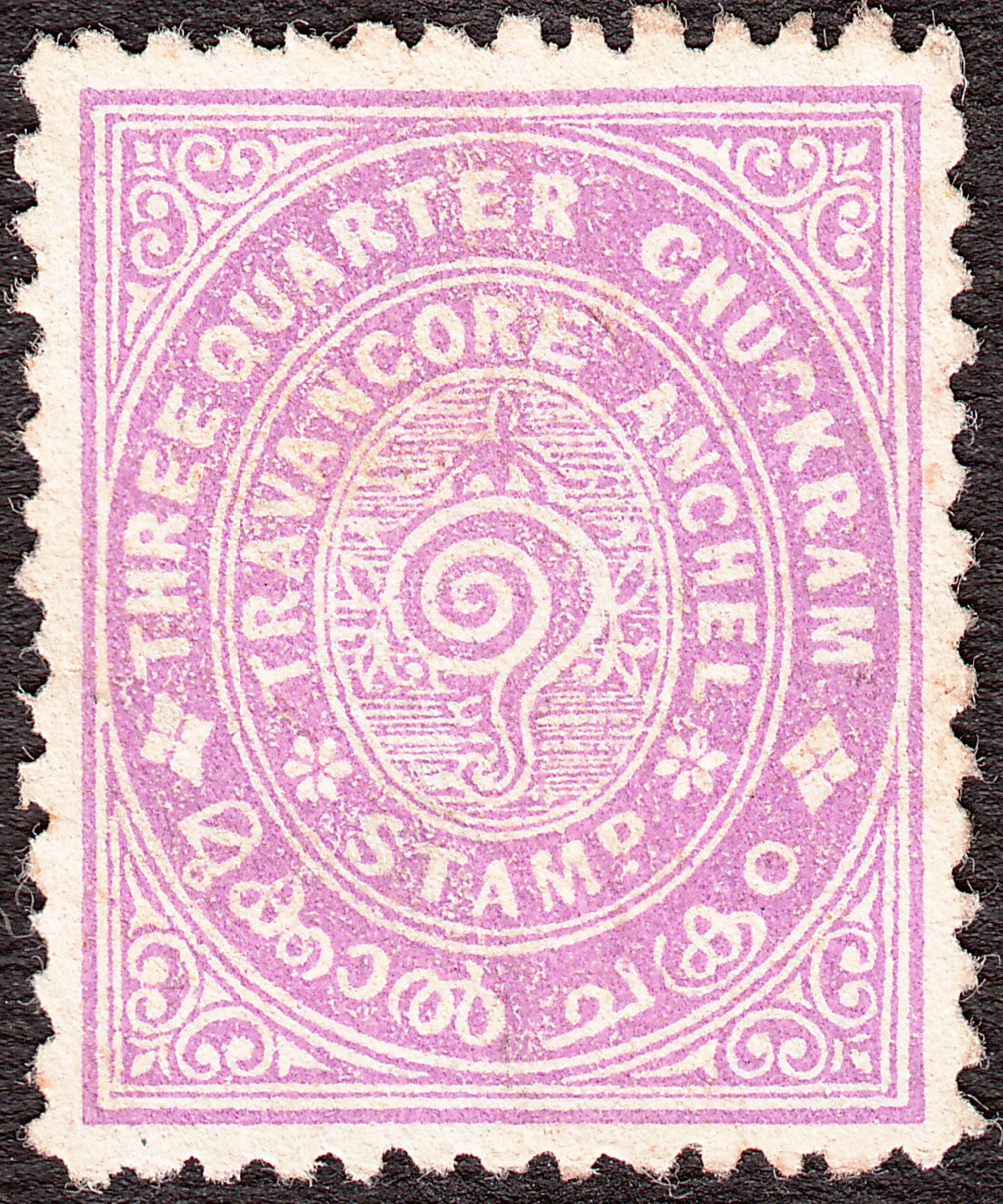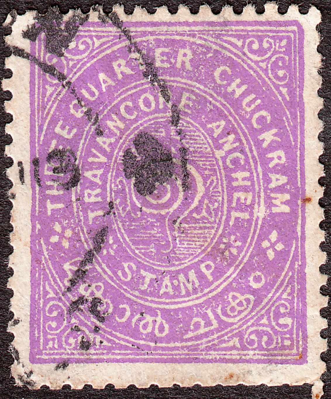 Foren-Übersicht Fragen und Diskussion Übersee Asien Indien Vertragsstaaten und Feudalstaaten Travancore MiNr. 31 - 3/4 Chukram lebhaftlila, violett