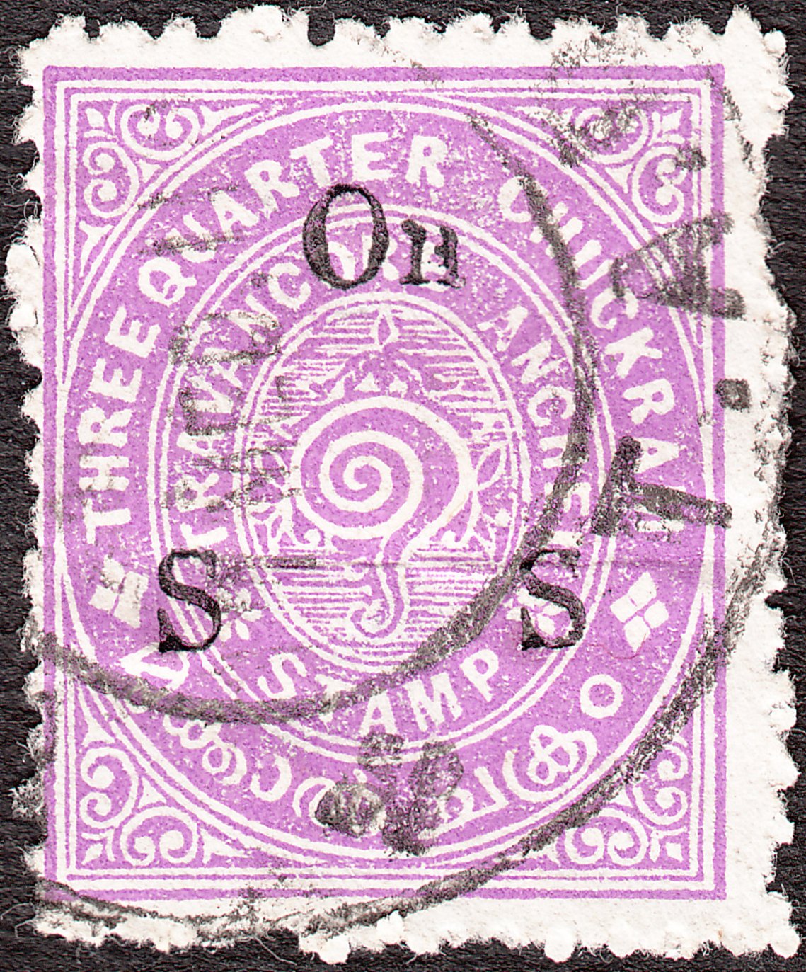 Diese Freimarke zu 3/4 Chukram in lebhaftlila, MiNr. 31, wurde mit einem schwarzen Aufdruck "On S S" versehen als Dienstmarke ausgegeben und als solche als MiNr. D 29 katalogisiert: