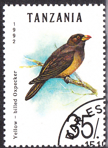In einer Serie "Vögel" ist in Tansania eine Marke (MiNr 1320) mit der Abbildung eines Gelbschnabel-Madenhacker (Buphagus africanus) erschienen.