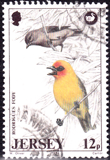Auf dieser Marke aus Uganda (MiNr 89) ist ein Königsweber (Ploceus aurantius) zu sehen. Auch wenn die Marke leider einen Wellenstempel trägt, ist sie noch geeignet, das Motiv vorzustellen.
